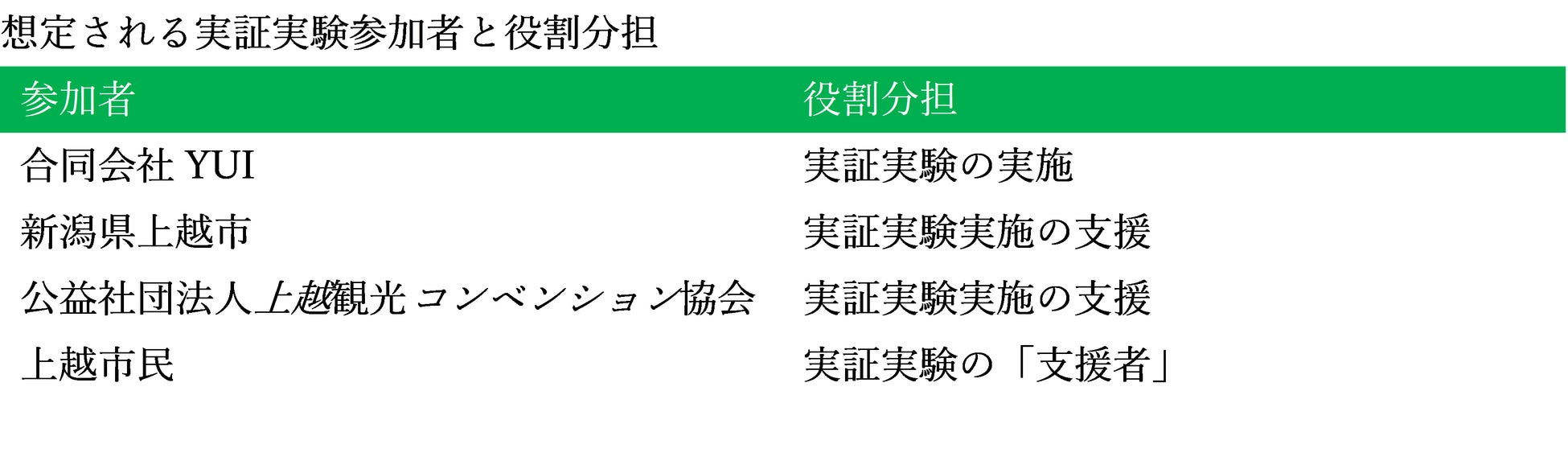 実証実験には新潟県上越市(市長 中川 幹太、以下 上越市)と公益社団法人上越観光コンベンション協会(会長 山田 知治、以下、上越観光コンベンション協会)が協力し、実施します。