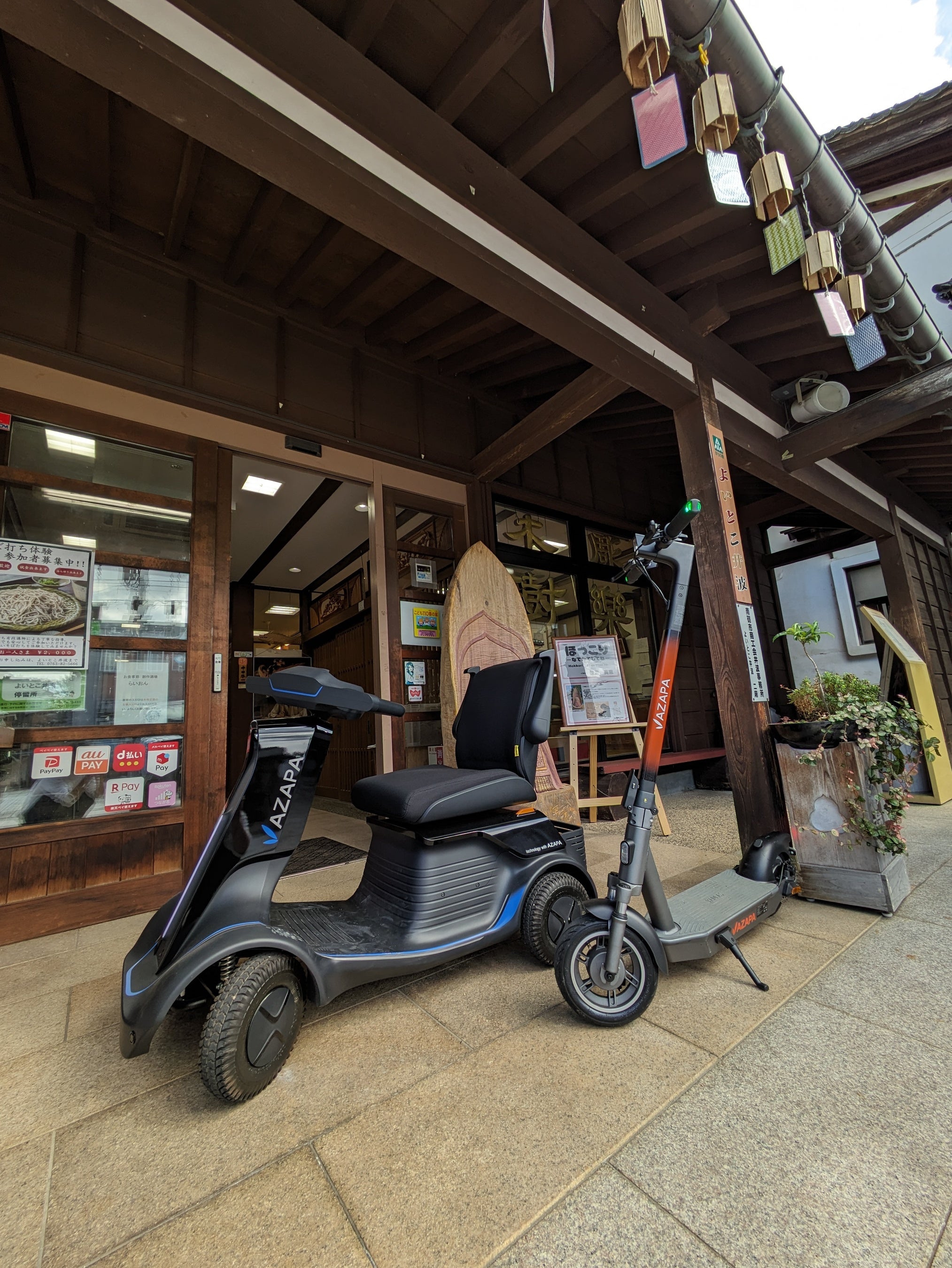 実験では、グリーンスローモビリティやシニアカー、電動キックボードを使用し、観光客および地域住民を対象に試乗体験を提供しました。坂が多く、観光資源が点在する地域の特性を踏まえ、より効率的な移動手段を探求するための取り組みを実施しました。