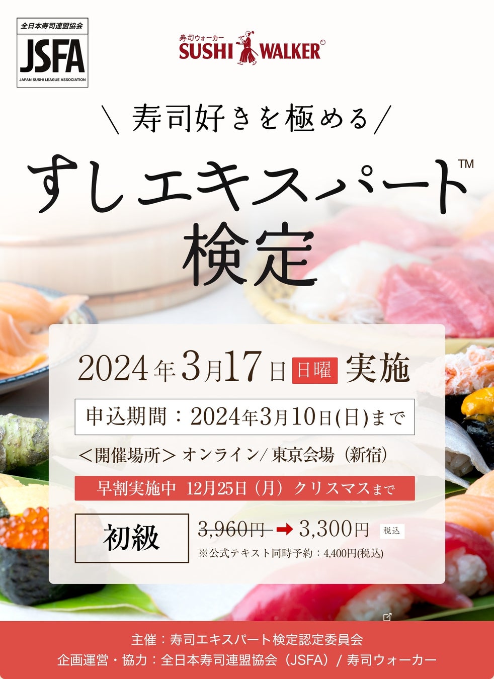 「すしエキスパート検定」 開催決定! 11月1日「すしの日」を記念して冬の期間限定キャンペーンとして早割も開始