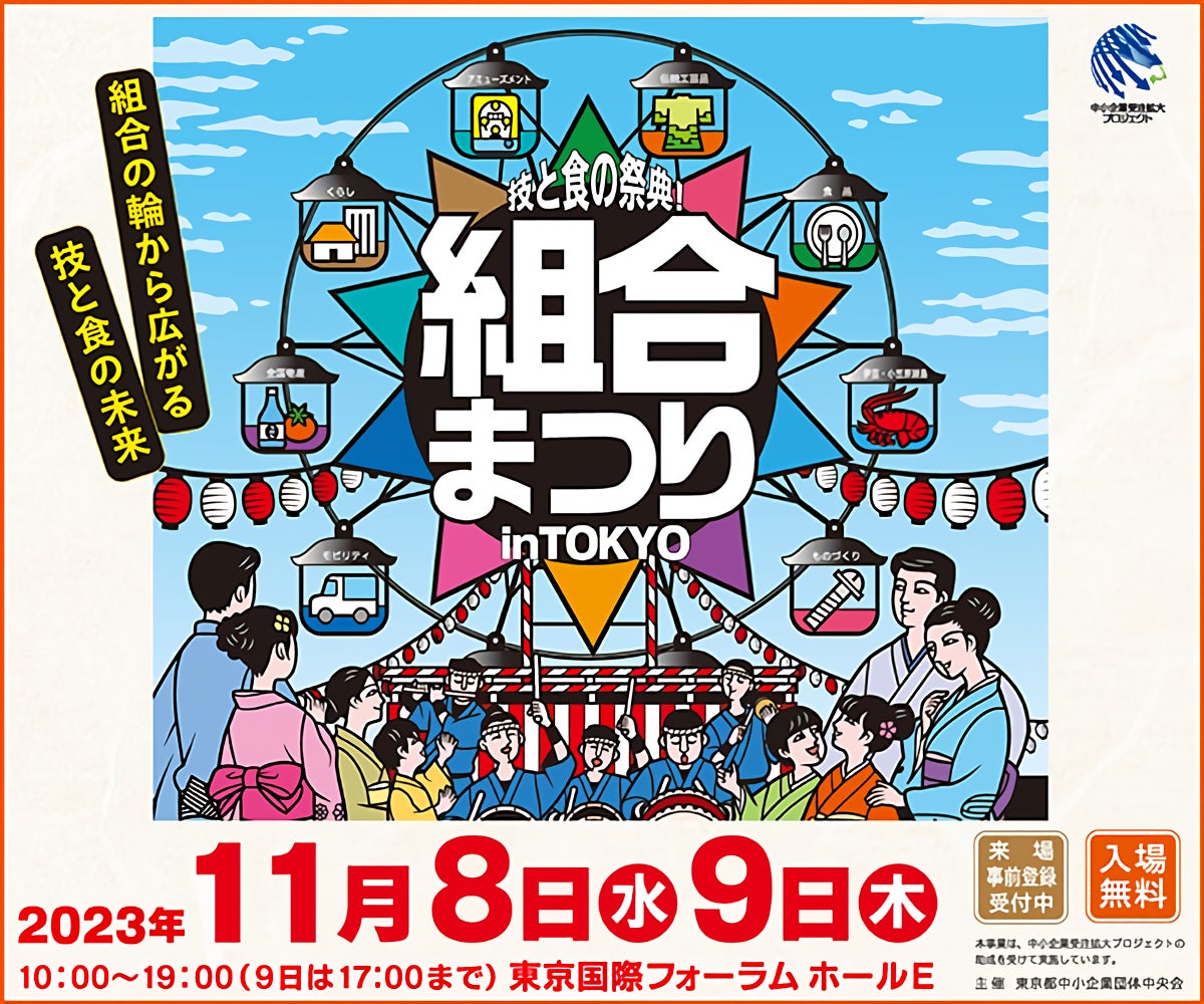 東京都中小企業団体中央会(所在地:東京都中央区、会長:會津 健)は、「中小企業受注拡大プロジェクト」の一環として、東京と全国の中小企業組合が大集結!「 組合まつり in TOKYO ~技と食の祭典!~」(入場無料)を開催いたします。