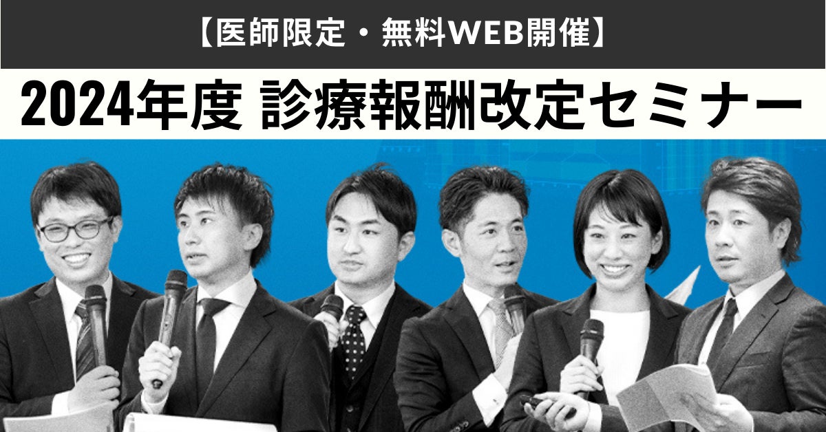 株式会社クレドメディカル(本社:大阪市淀川区、代表:志賀 嘉典)は、2024年2月23日(金)より、「2024年度診療報酬改定 改定項目解説セミナー」を開催いたします。診療報酬改定の答申資料をもとに、新設・変更された算定項目等の中から診療科目ごとに必要な情報を厳選し、いち早くお届けします。医師の方限定で参加費無料、オンデマンド配信で3月8日(日)まで繰り返しご視聴いただけます。