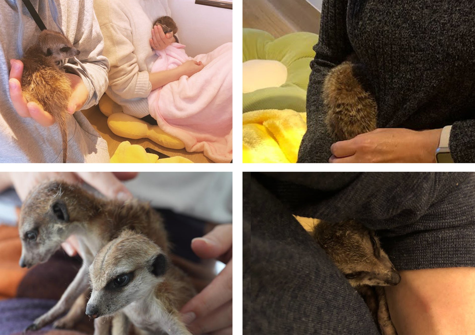 愛情をもって育てられたことが分かるミーアキャットの人懐っこさ。この人懐っこいミーアキャットに膝上で甘えられると、ついつい延長してしまうかも・・・?