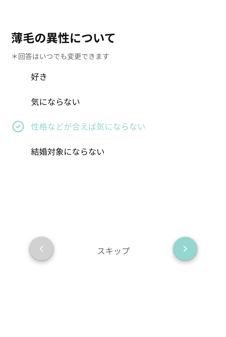 ”薄毛”・”ぽっちゃり”・”離婚経験”・”病気”への理解度が一目でわかるプロフィール。