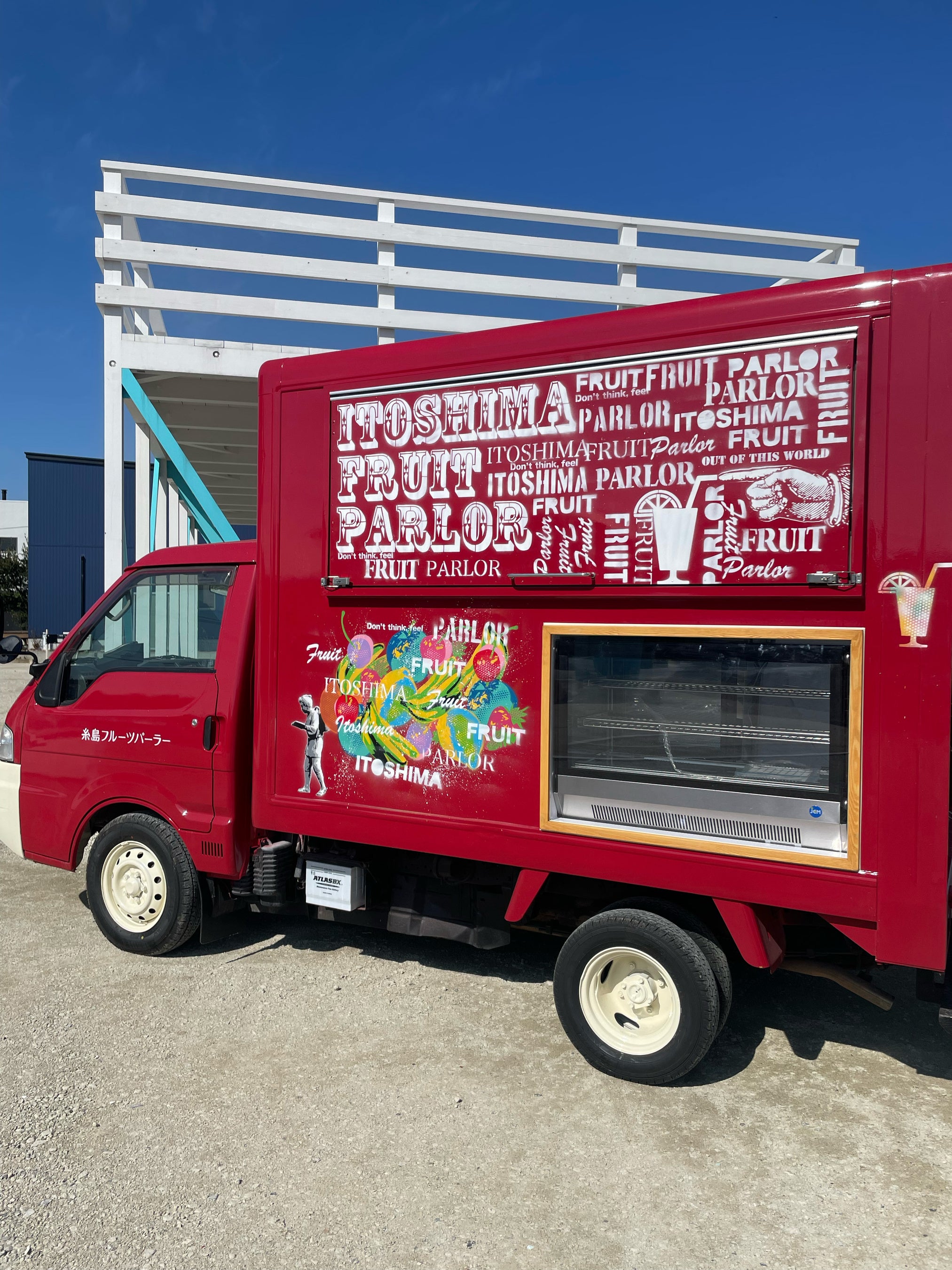 福岡の⽷島でショップを探していたが場所がなかなか⾒つからず、フードトラックで開業を決意したのが2021年。夫婦で営む移動型フルーツパーラーの始まりでした。夢を現実にかえ、苦労しながらも⾊々な努⼒と⼈のサポートでがんばっています。