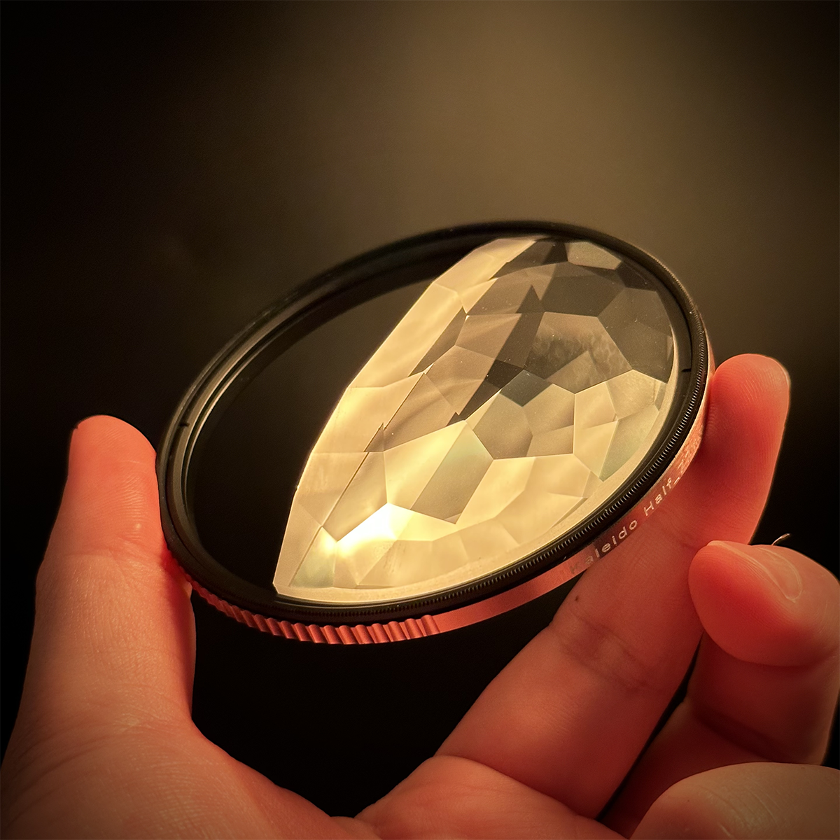 今回ご紹介する新商品「Kaleido (カレイド)」 は、フィルターの表面を多面状にカッティングすることで、被写体を万華鏡のように映し出す、スマホカメラ用のプリズムフィルター。
