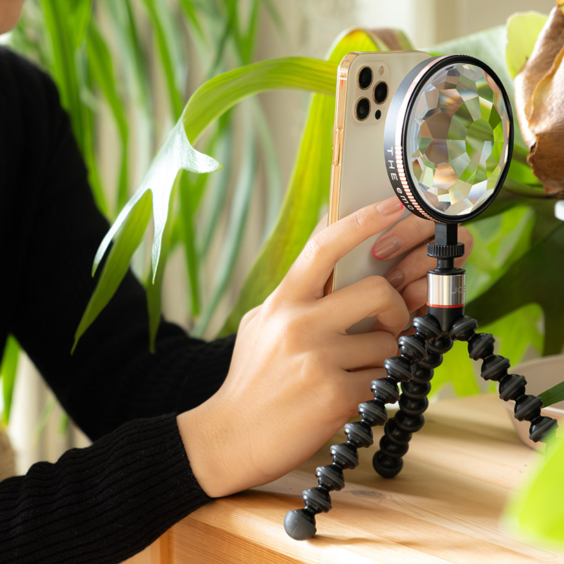 また、アダプターとグリップの両方に汎用性のある1/4インチのネジ穴を施してあるので、フィルターをカメラ三脚やトライポッドなどに固定して、両手でスマホを操作しながら撮影することも可能となっています。