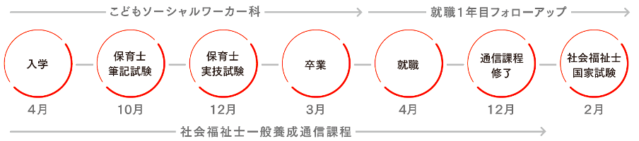 ◆社会福祉士と保育士のW国家資格取得までの流れ
