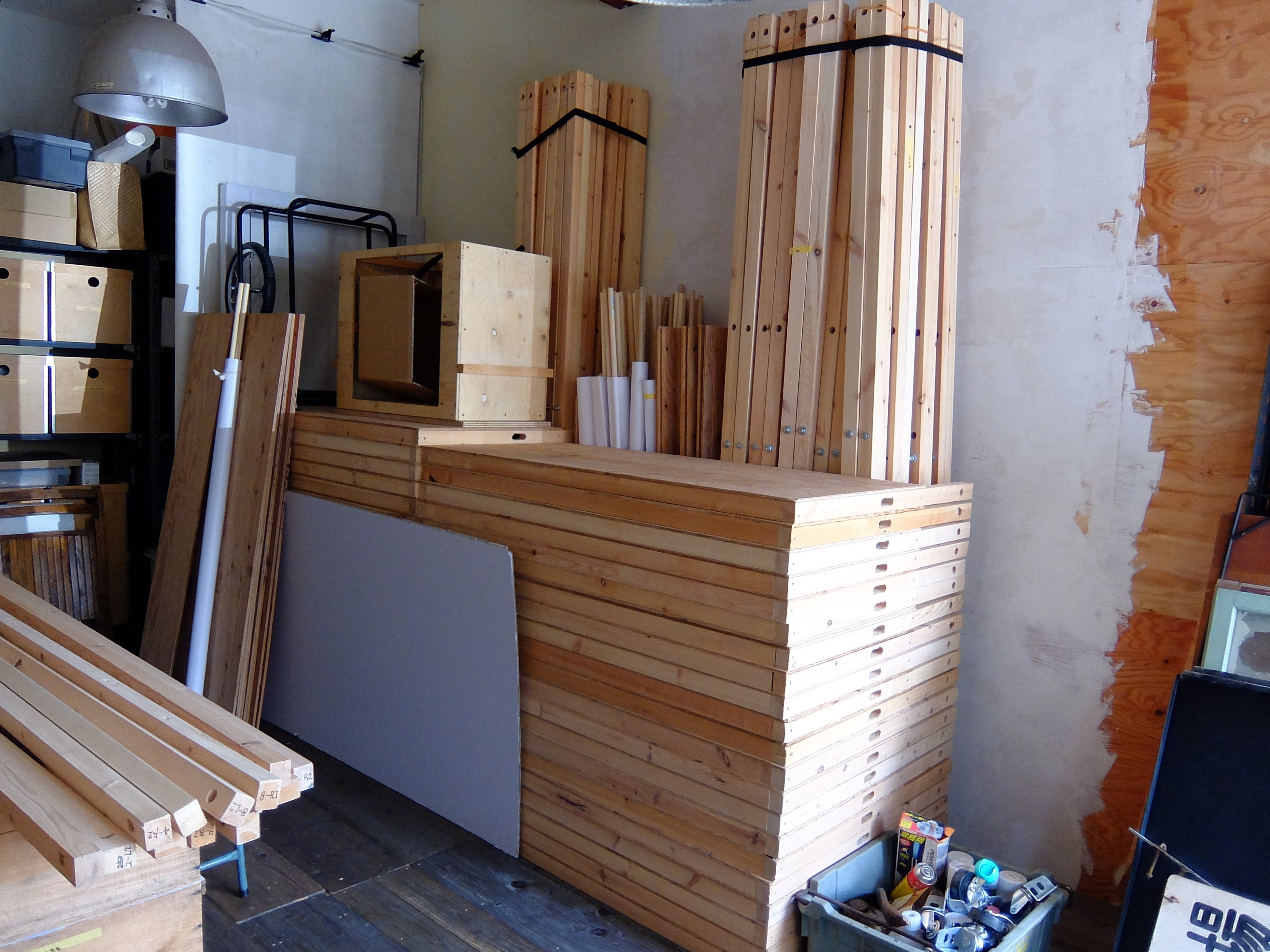 分解すればコンパクトに収納でき、トラックやバンで数十台まとめて運搬することができます。