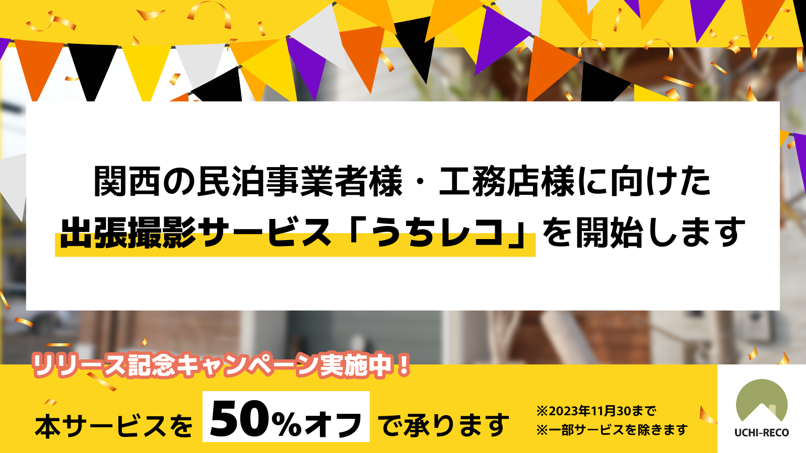 【サービスリリースキャンペーン実施中】関西の民泊事業者様・工務店様に向けた出張撮影サービス「うちレコ」を開始します