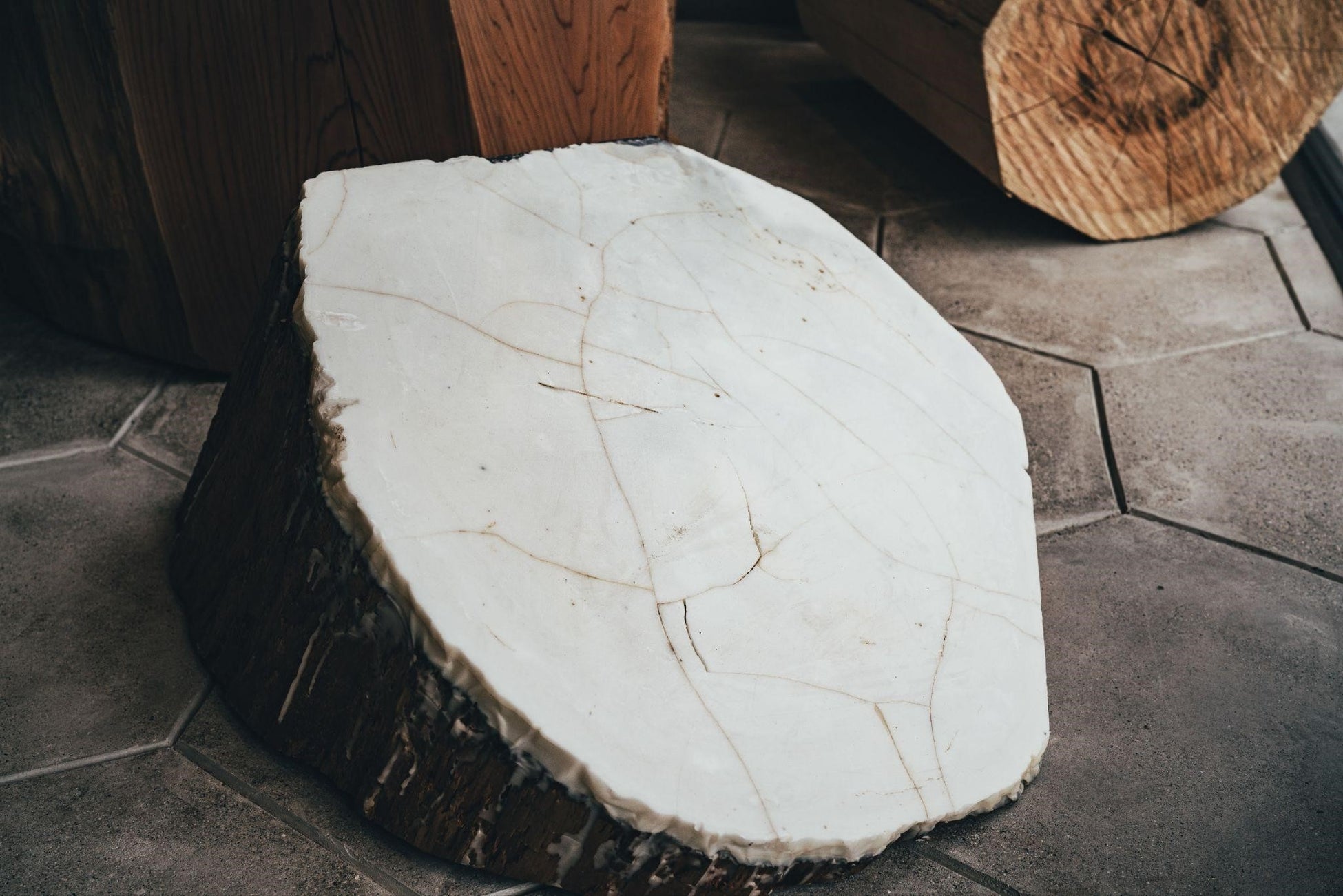 100年以上の時間を生きてきた春日杉が持つ唯一無二の造形に手を加えることで、本来見えなかった面が現れてきます。 無作為の造形への作為により、隠れていた無作為の造形がまた露出し、それを作為で埋める。 見えてくるのは素材そのものです。