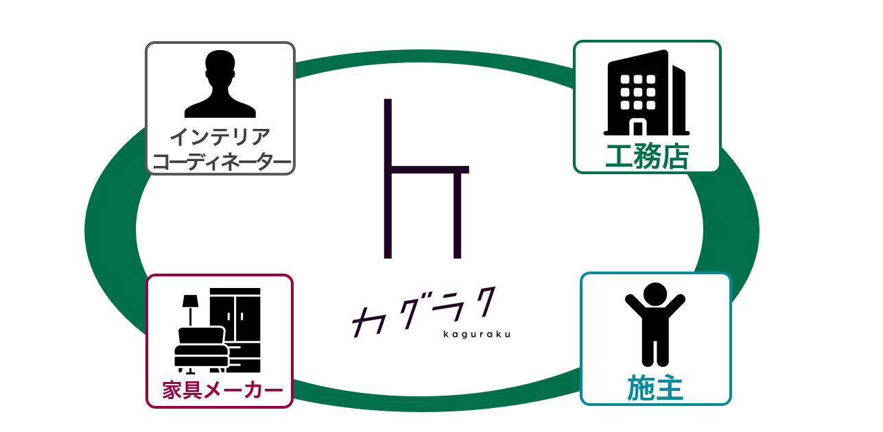 工務店・家具メーカー・インテリアコーディネーター・施主をつなぎ、オンライン上で業務を一元管理。住宅市場・家具市場をシームレスにつなげるプラットフォーム『カグラク』