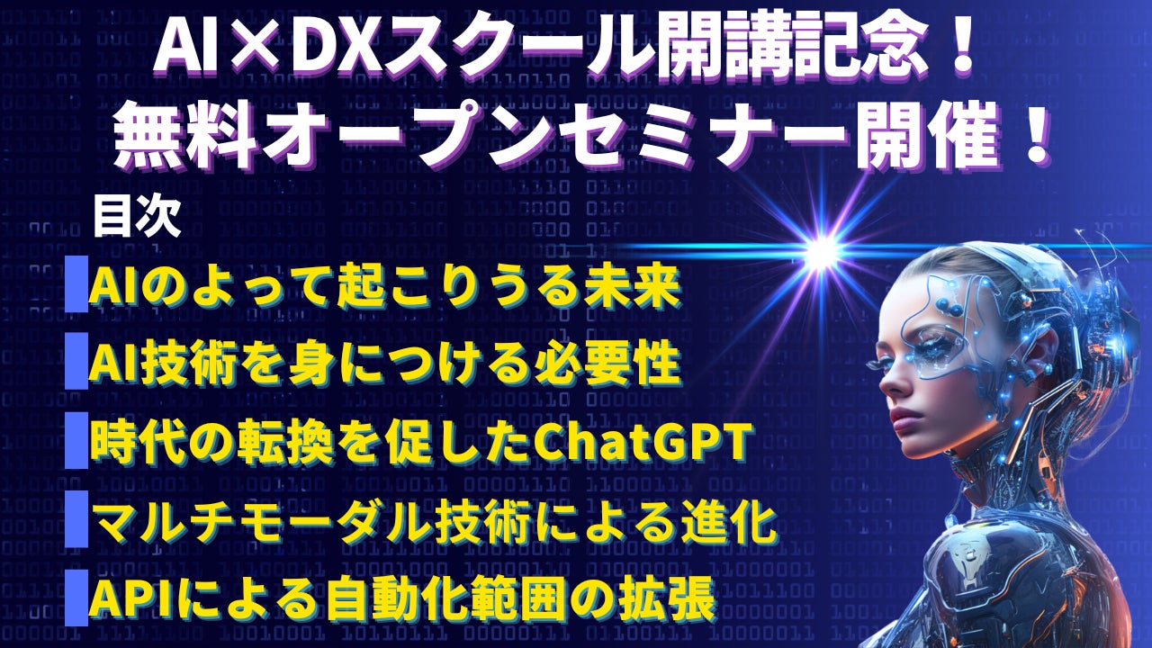 そして、AI DXスクール開講記念として特別な無料オープンセミナーを実施いたします。