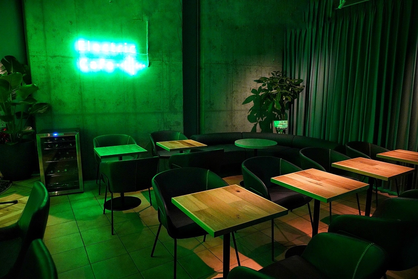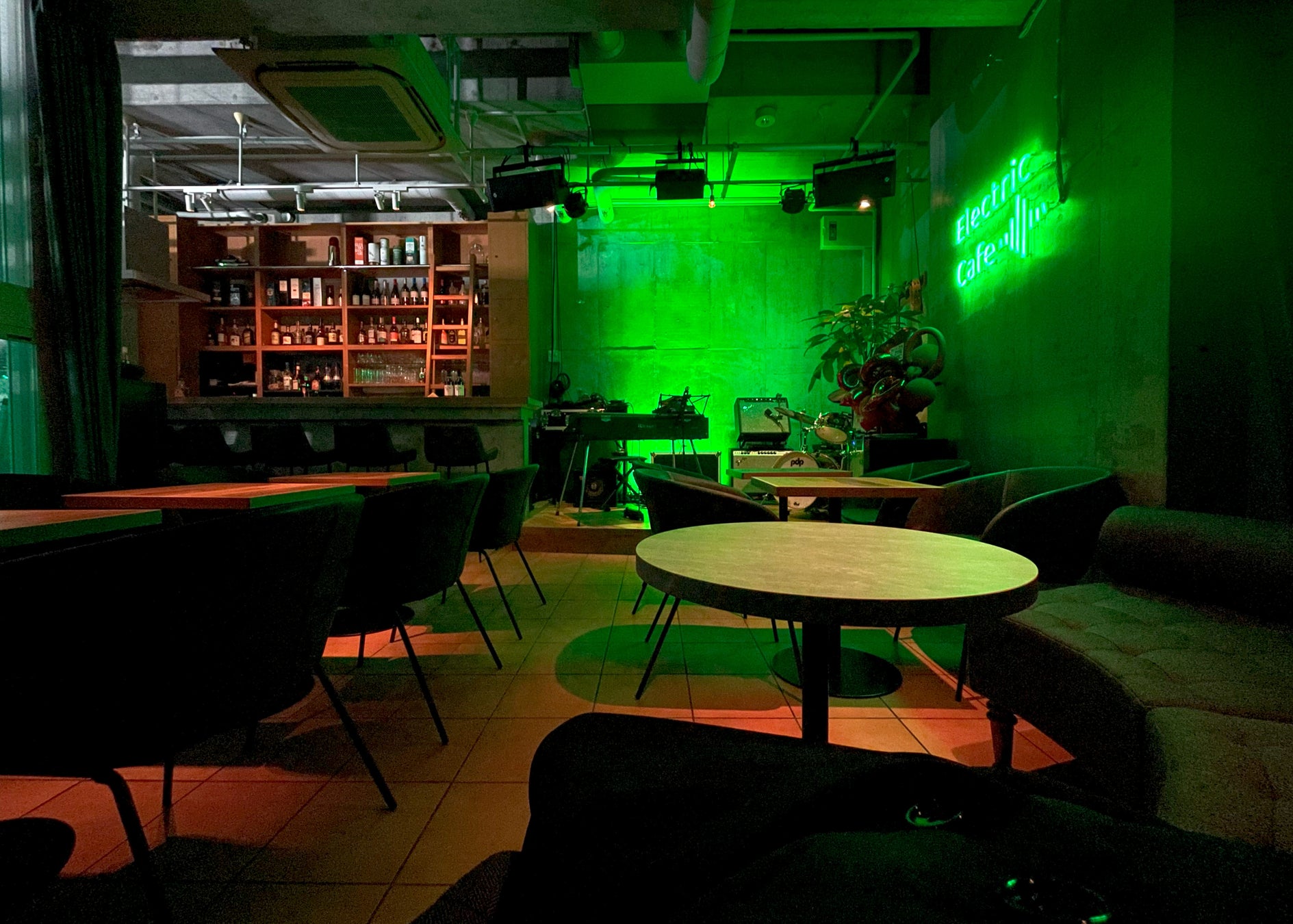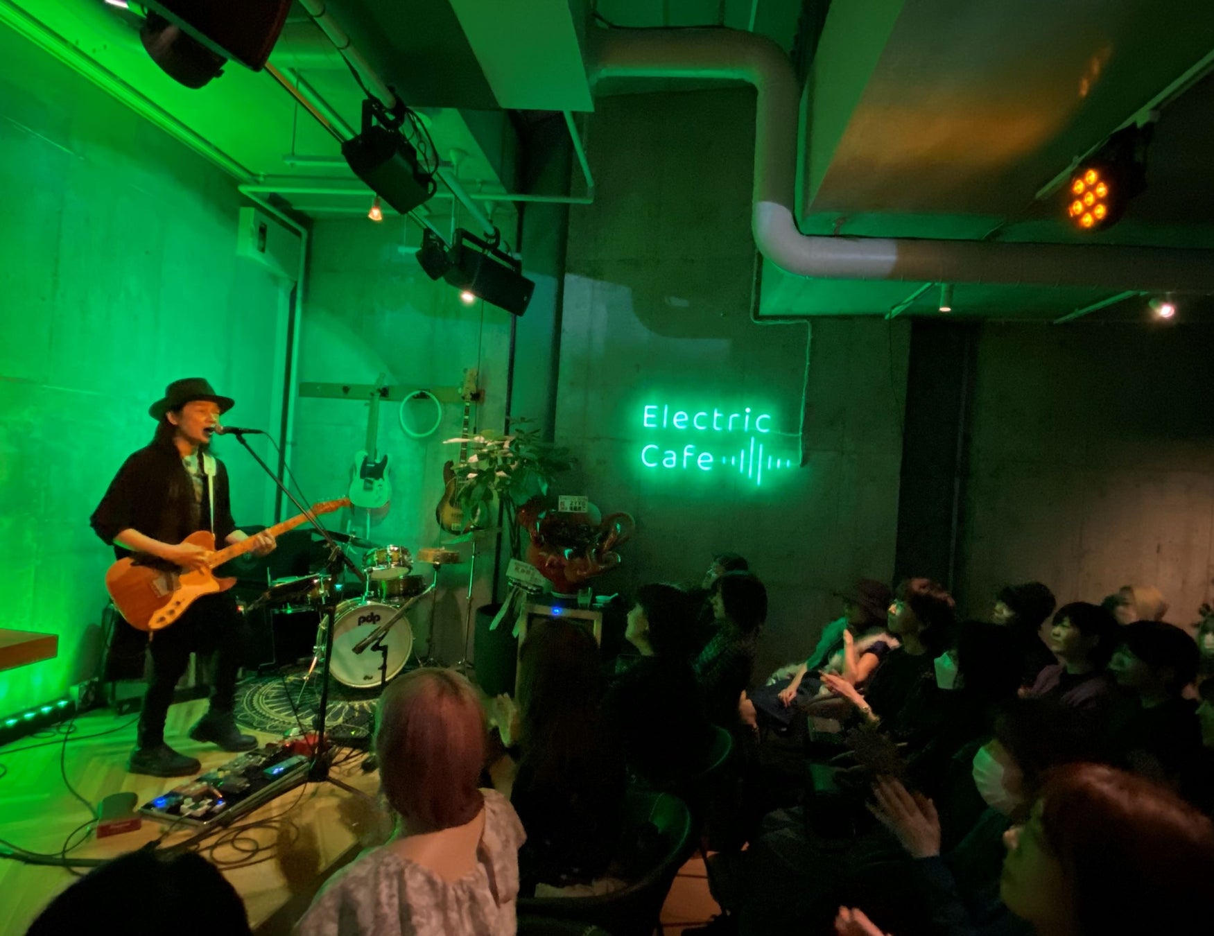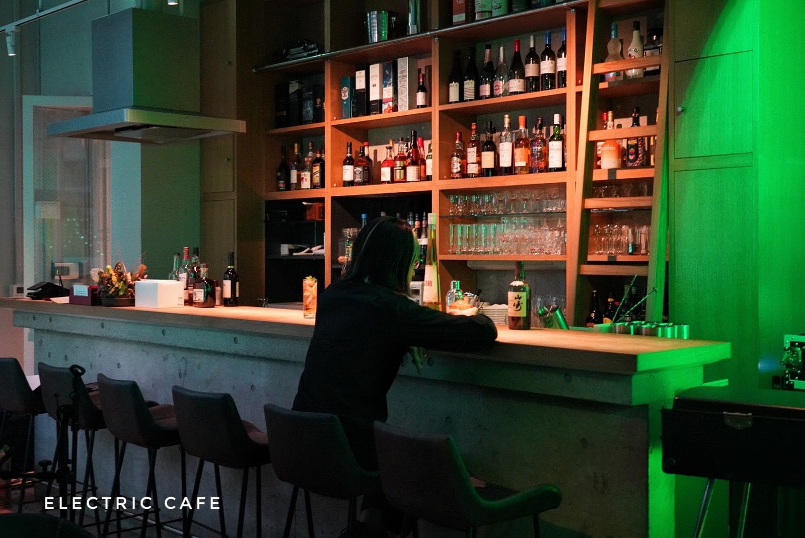 映像メディア制作を手掛けていた現代表と音楽プロデューサー(現店長)が意気投合し「ジャンルの垣根を超えたアーティストとファンが気軽に交流できる秘密基地」の実現に向けて計画がスタートしたのは2020年でした。しかし直後に起こったコロナ渦で多くのアーティスト達が活動の場を奪われていく現状に直面。私たちはアーティスト達に向けた自由な表現活動の場の提供、より個人の嗜好や希少性にマッチしたサービスの実現を課題に、準備を重ねてきました。こうして完成したElectric Cafeの可能性を実証するため、オープンに先駆けた10月末~11月にかけて業界人やアーティストを招いてのライブ・レセプションを実施。参加したメジャーアーティストから高い評価をいただき、潜在力の高さをアピールすることができました。上質なバーとしての魅力の追求は勿論のこと、多彩なクリエイティブ用途にお応えできる空間づくりを行ってまいります。