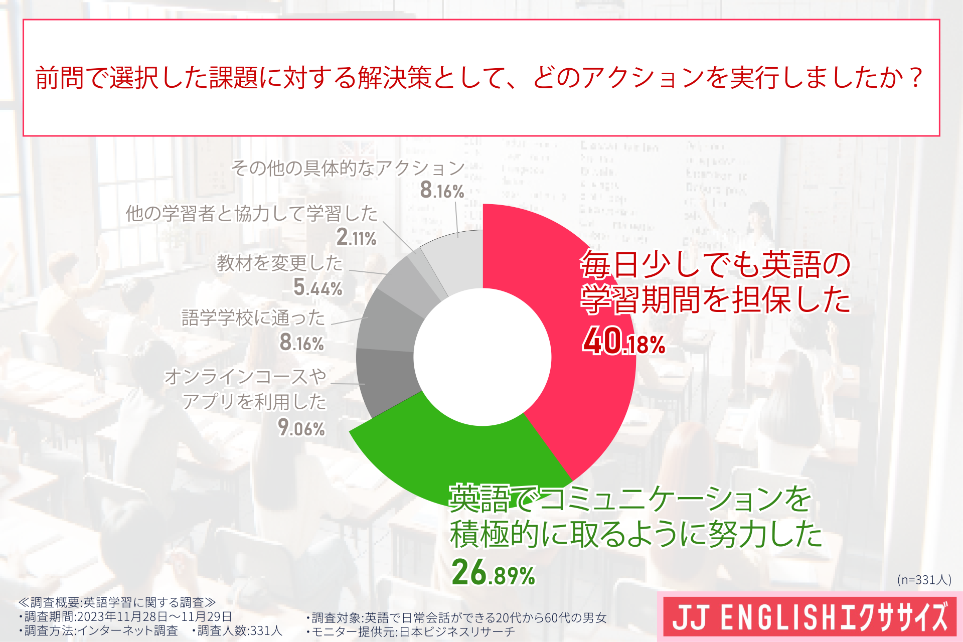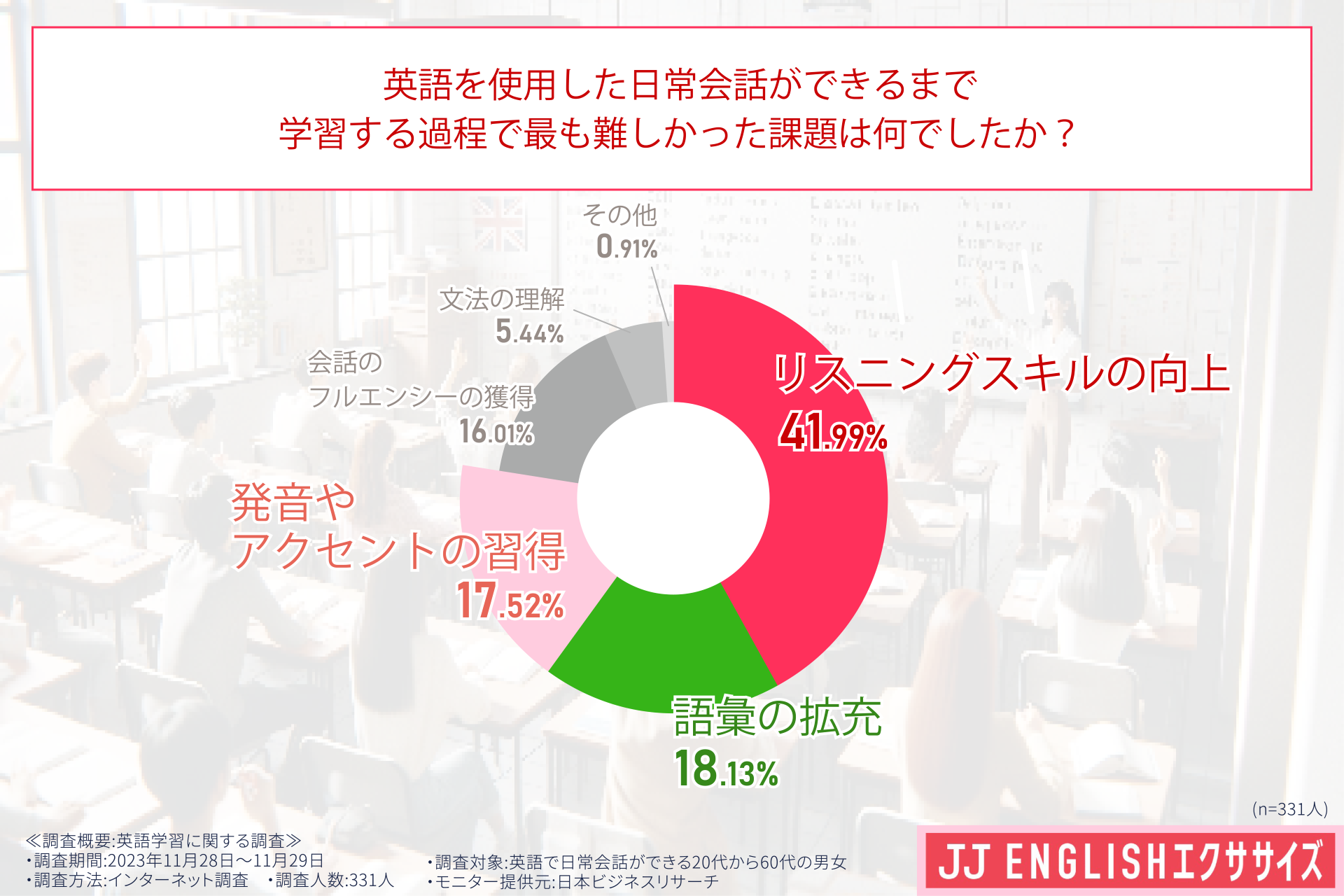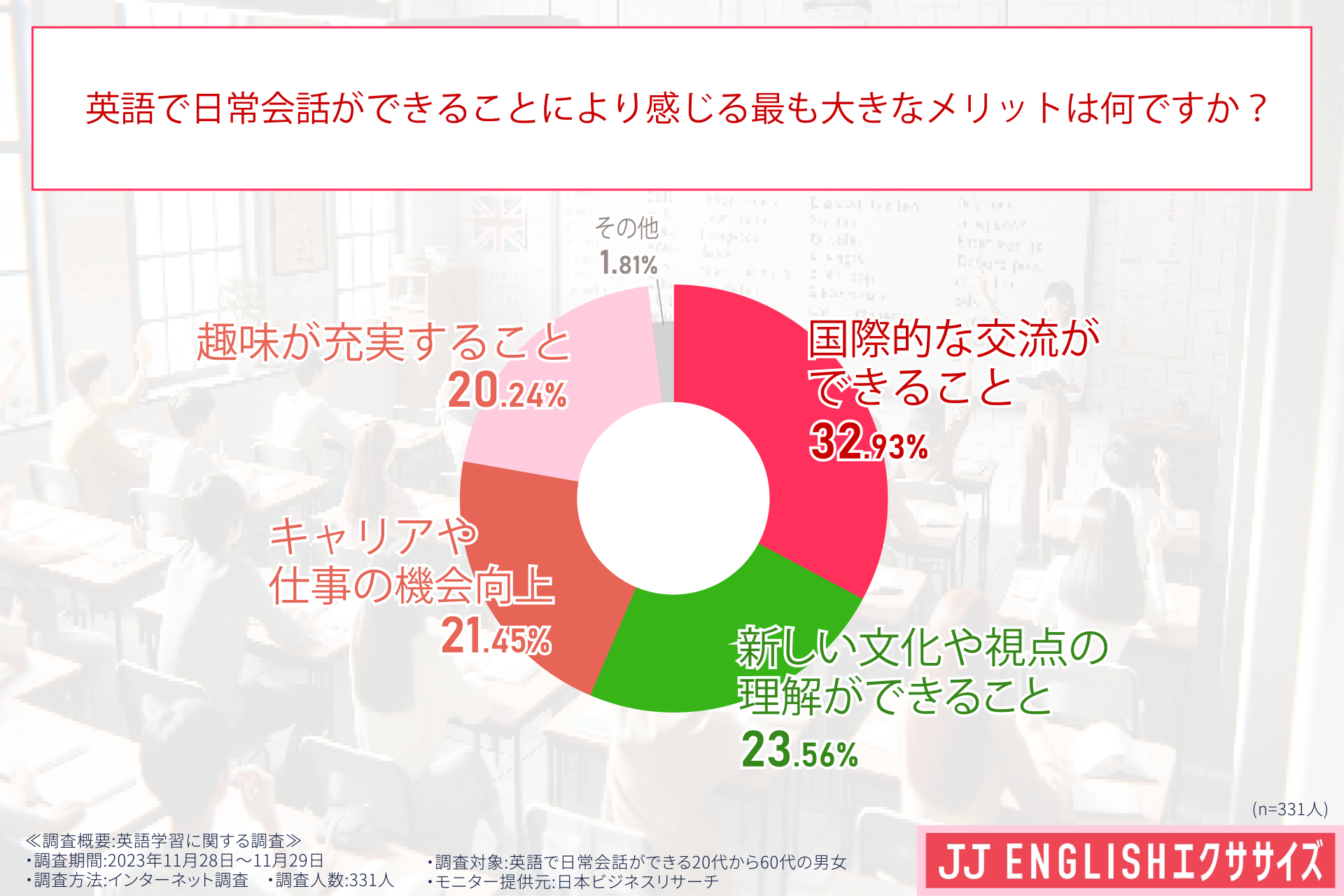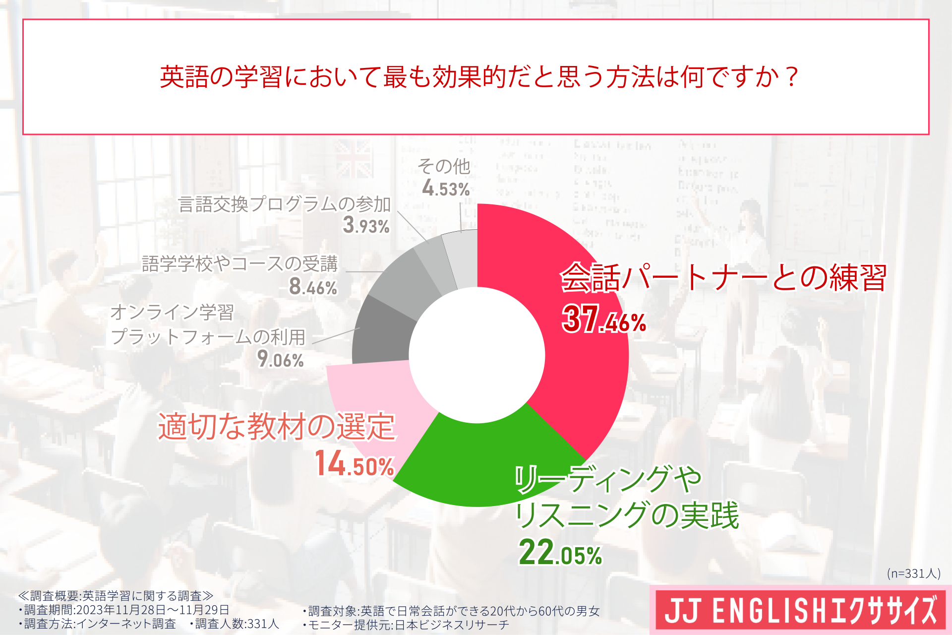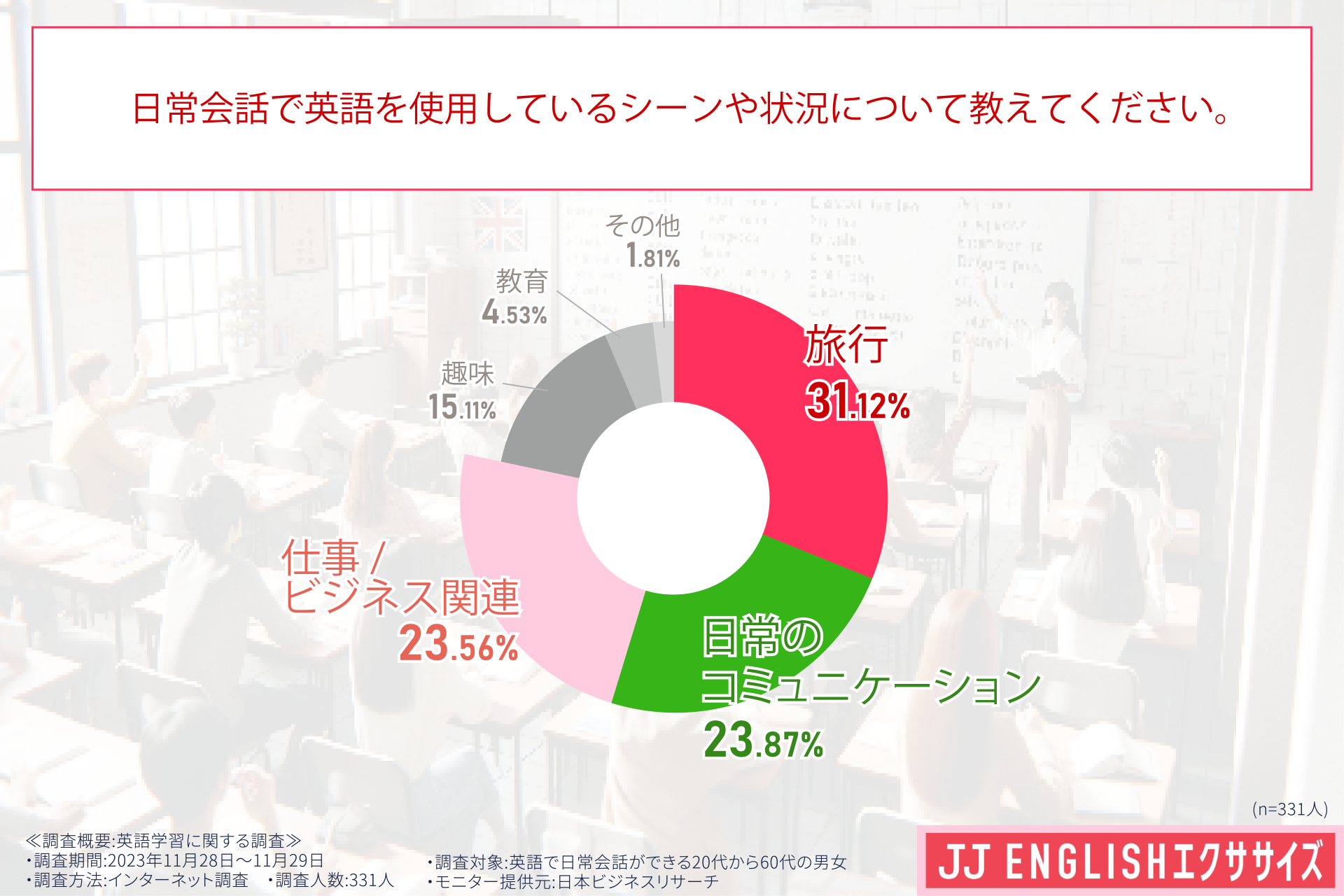 引用元 「JJ ENGLISHエクササイズ」 英語学習に関する調査(調査委託先:日本ビジネスリサーチ)