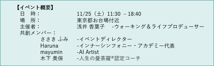 ■11/25東京お台場にて歩くことでウェルビーイングを実現するイベント開催