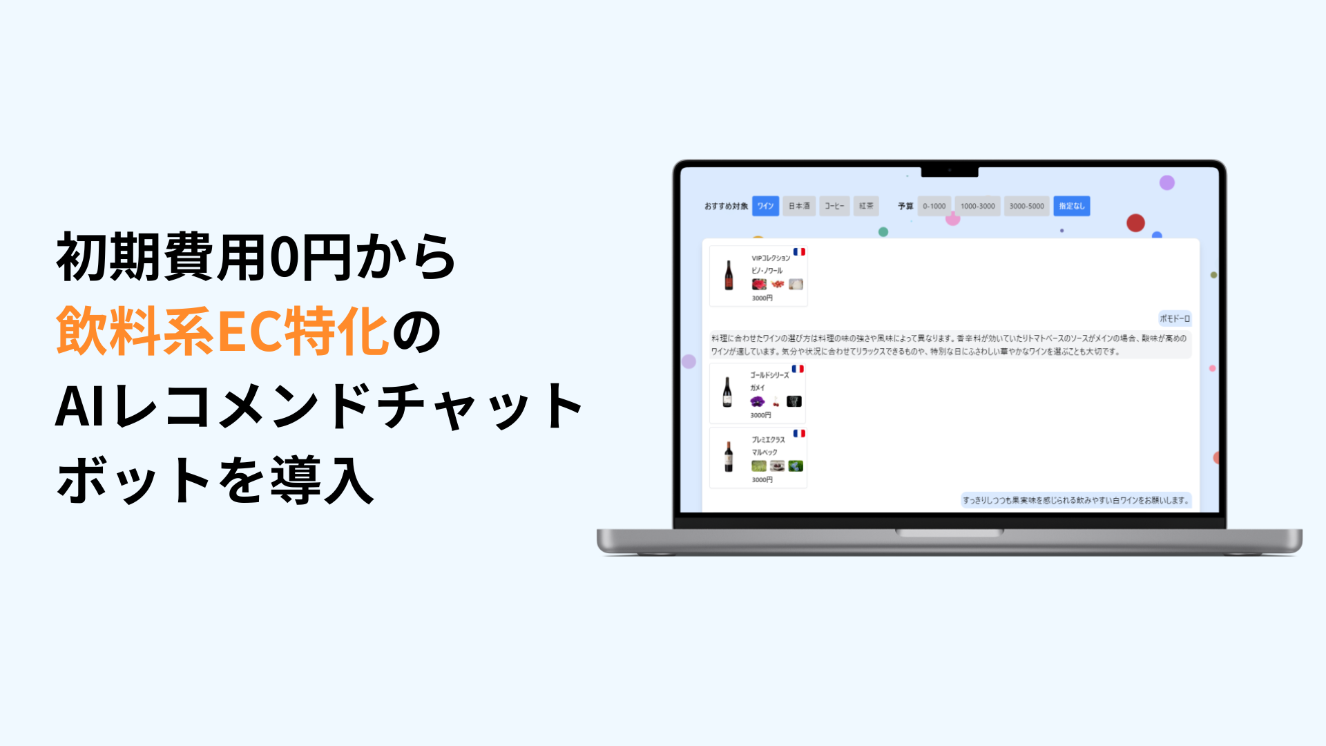 初期費用0円から導入できる飲料系EC向けのAIレコメンドチャットボット「DrinkAI Chat」をリリース