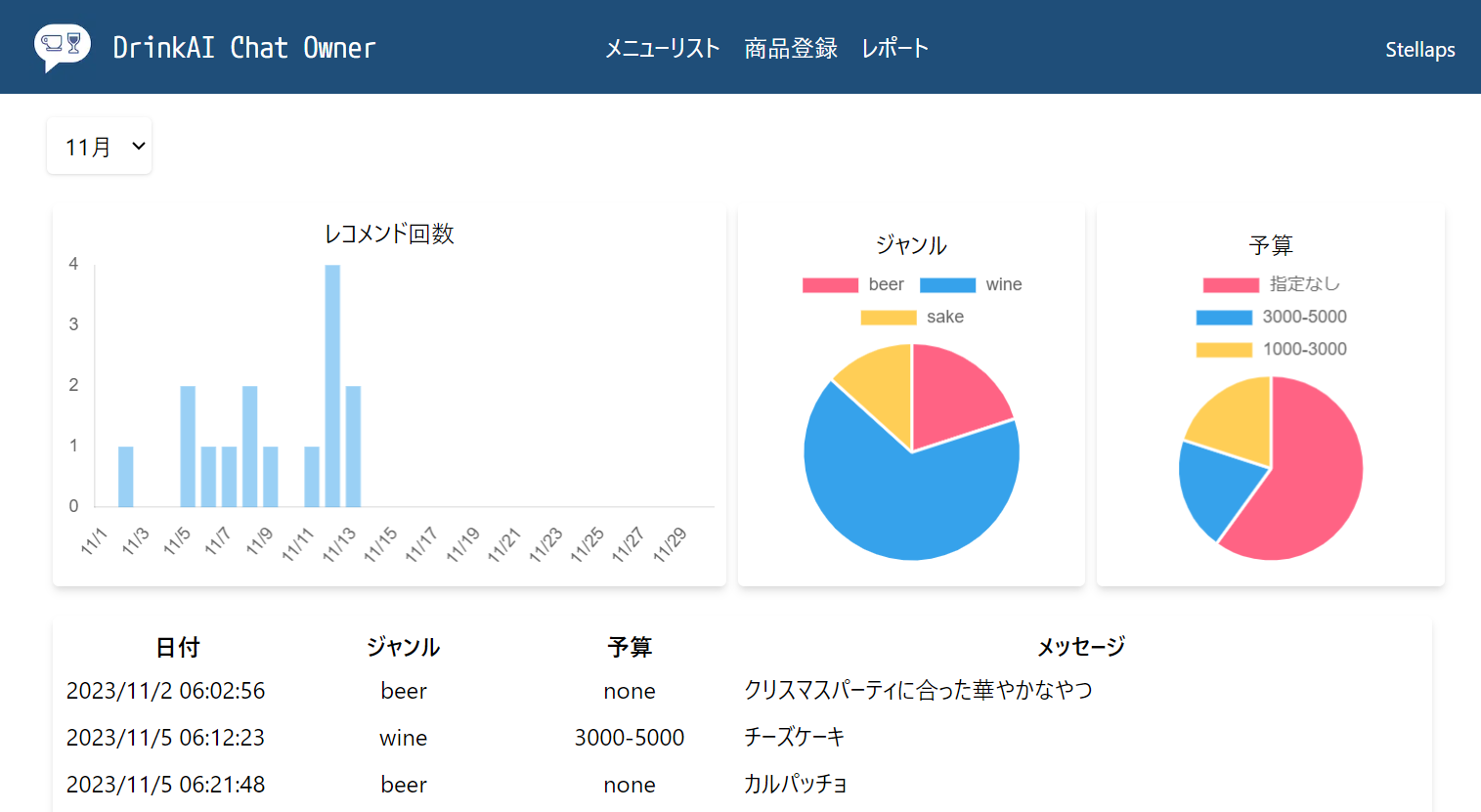 レコメンドの利用状況、送信テキストなどはダッシュボードで常に確認することができます。