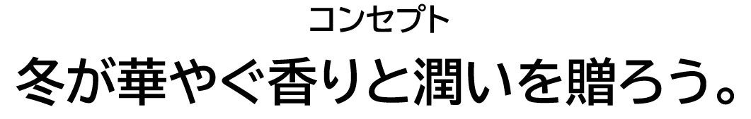 乾燥しがちな冬の肌に豊かな潤いを与えるマルラオイルと、肌を引き締める、すっきり爽やかな白ワインを配合。弾けるようなもっちり肌、透き通るような白雪肌へ導きます。