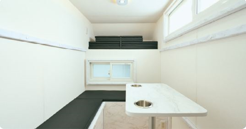 CAMBY店舗は、トレーラーハウスを採用しました。トレーラーハウスは法令上、建築物ではなく車両扱いとなるため、市街化調整区域でも設置が可能で、土地を有効活用することが出来るのが特徴です。