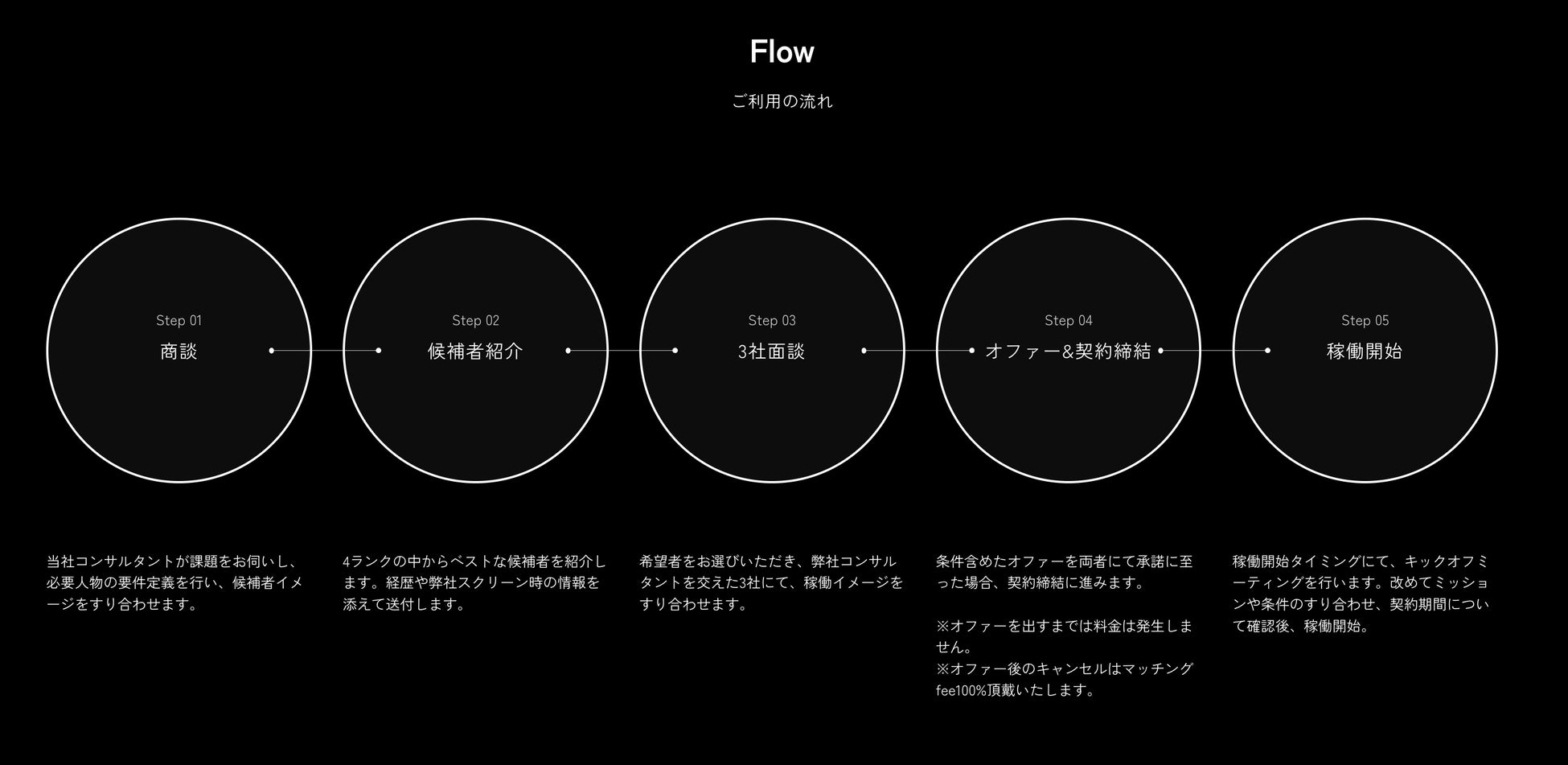 最短、翌営業日に各企業の状況や課題に応じた強みを持つプロフェッショナルとのマッチングを実現することが可能なサービスです。専属エージェントが直接面談し、厳選した人材のみをご紹介。
