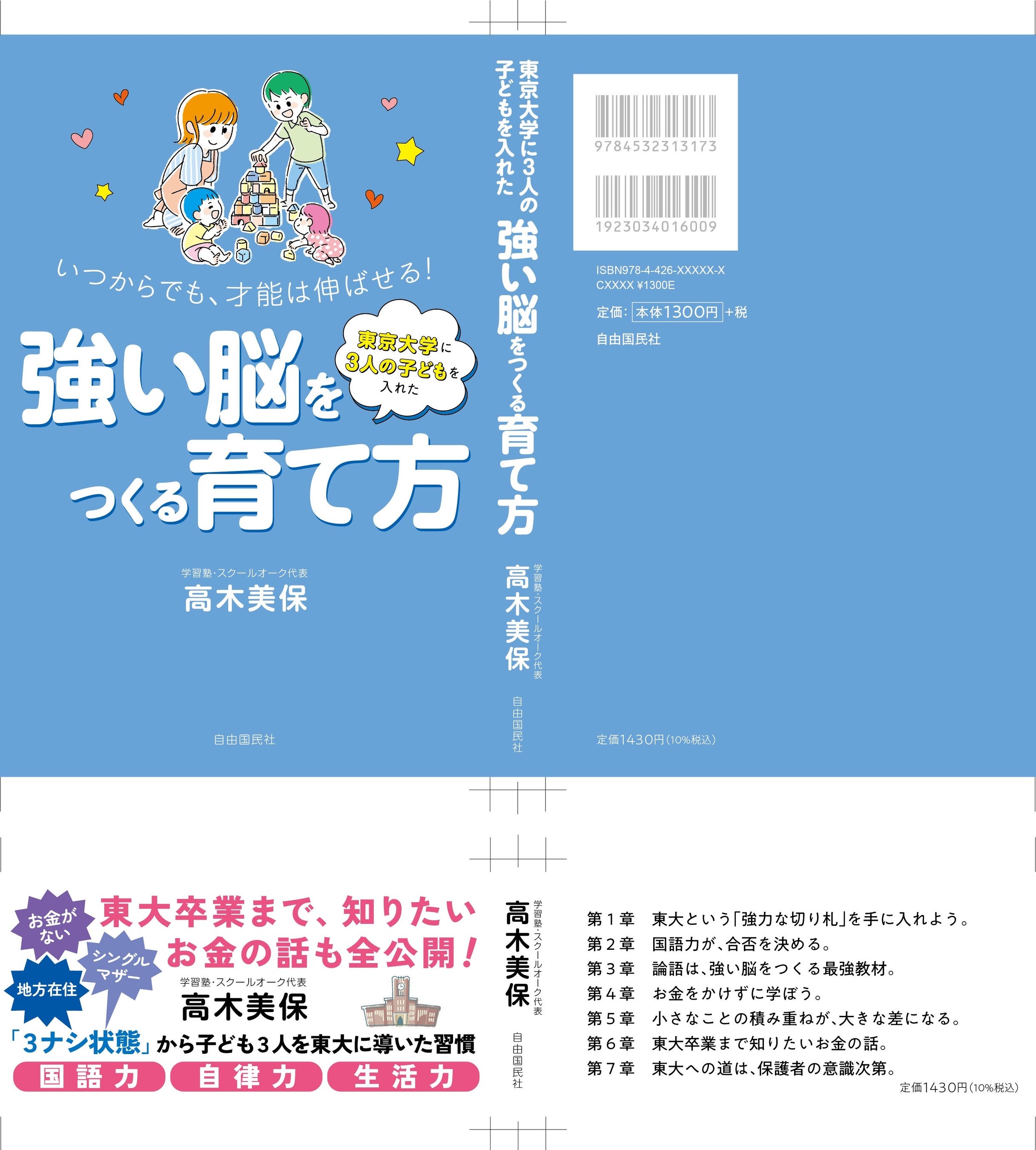 12/6(水)に、自由国民社さんより【いつからでも、才能は伸ばせる!!「東京大学に3人の子供を入れた」強い脳を作る育て方】を出版することが決定しました。