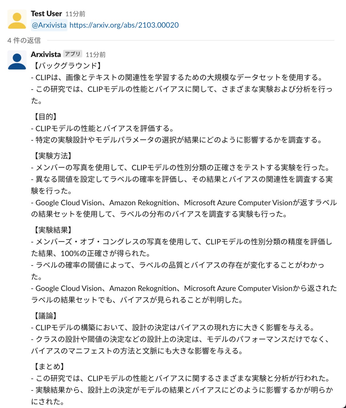 研究室及び法人様のSlackワークスペースに、Arxivistaを無料で試験導入していただくことが可能です。
