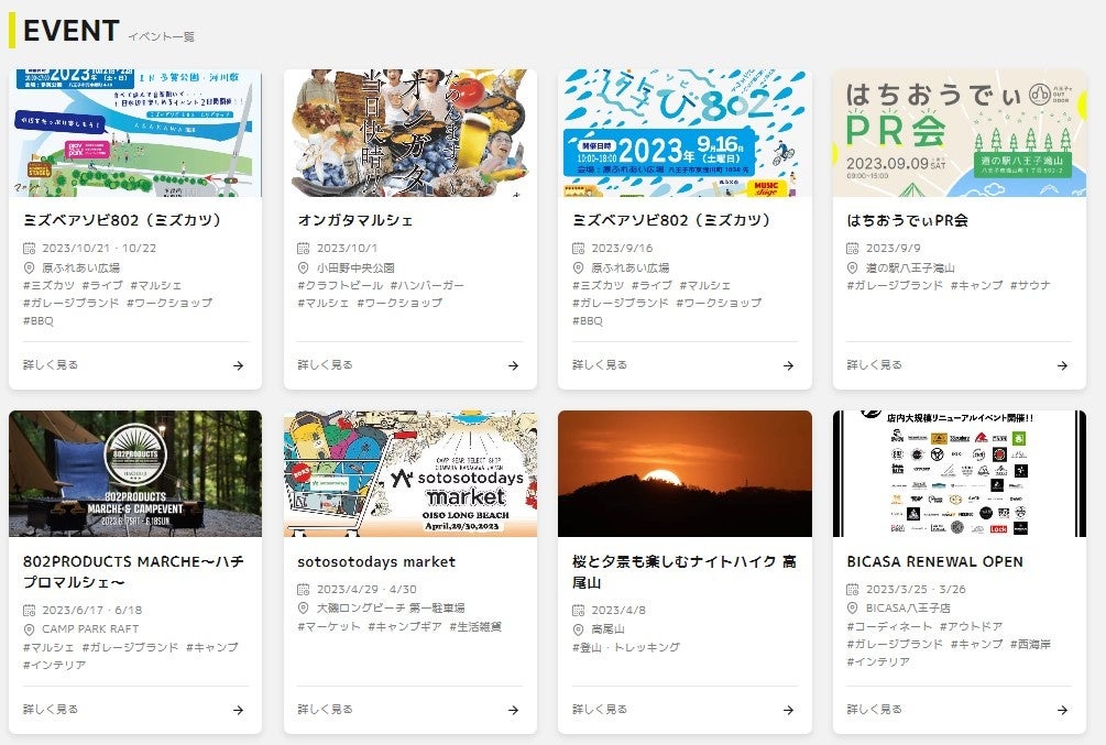 その一環としまして八王子アウトドア関連事業者などの情報発信を行うツールとして、皆さまがより身近にイベントやフィールド情報を取得できる八王子アウトドアポータルサイト【はちおうでぃ(八王子でOUT DOORの頭文字)】を開設いたしました。