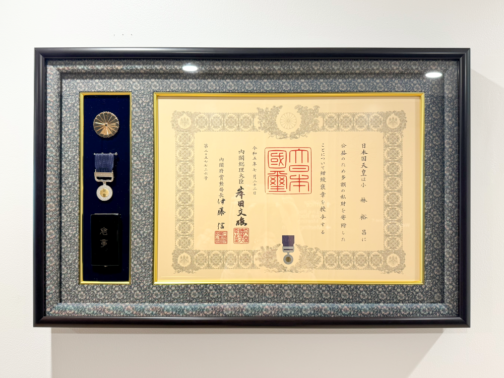 ※紺綬褒章は、公益のために私財を寄付し功績が顕著な個人または法人・団体に対し、日本国政府より授与されるものです。