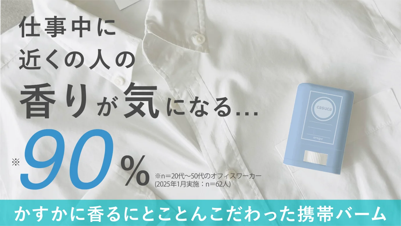 araga株式会社(本社:東京都千代田区、代表取締役:髙橋政大)は、応援購入サービスMakuake(マクアケ)にて「仕事中の香り悩みを解決!かすかに香る携帯バーム。」のプロジェクトを開始いたしました。※2025/4/2(水)12:00~スタート