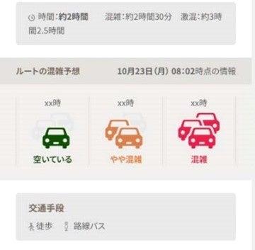 観光テーマや周遊地域を中心としたおすすめルートの紹介だけでなく、需要の分散化・平準化を目的としたタイムシフト観光(早朝・夜間)ルートの提案や、交通手段を考慮し、渋滞情報を加味したルートの提案などにより、スムーズな箱根観光をサポートします。