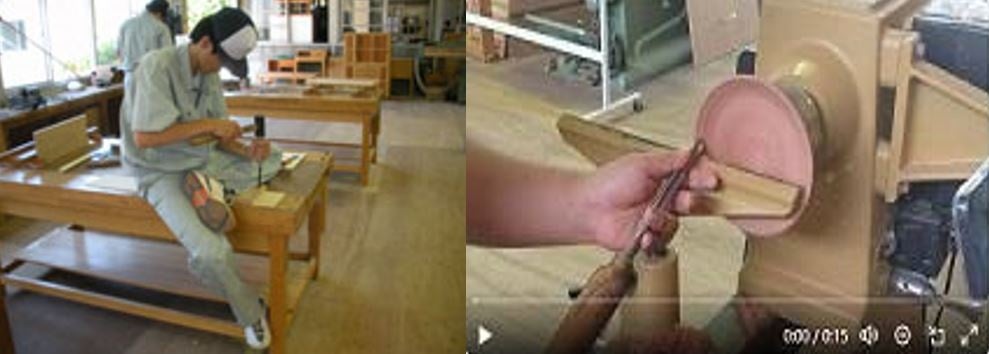 デザイン木工科では、「ものづくりのワクワクを実感」をモットーに、木の国和歌山の地場産業である、家具や建具等の木工製品のデザインから製作までを学びます。各工程に必要な手工具、機械操作、塗装等の基礎知識・技能を習得し、企業ニーズに対応できる人材の育成に力を入れています。また家具手加工作業技能検定2級はじめ、各種関連資格取得を目指します。