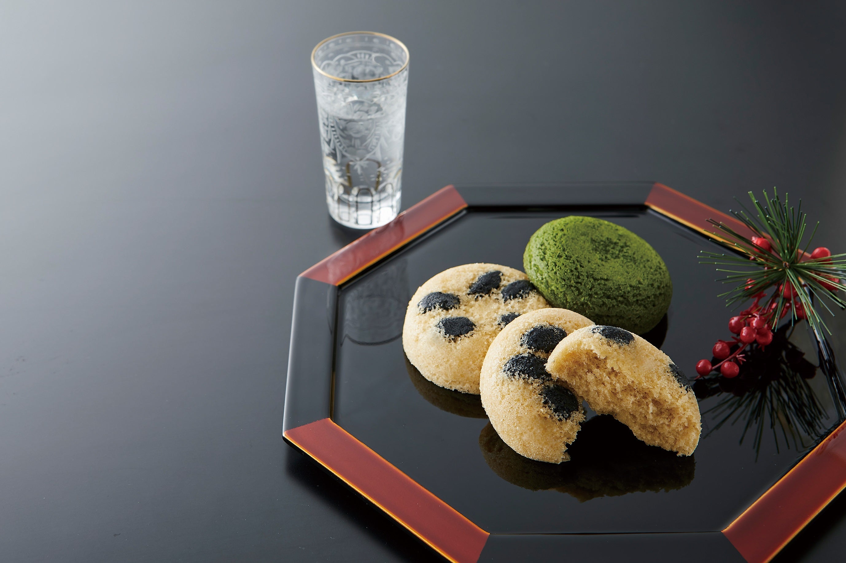 丹波産黒豆、黒豆きな粉、生地にも黒豆の風味づけをした餡を練り込んだ贅沢な一品
