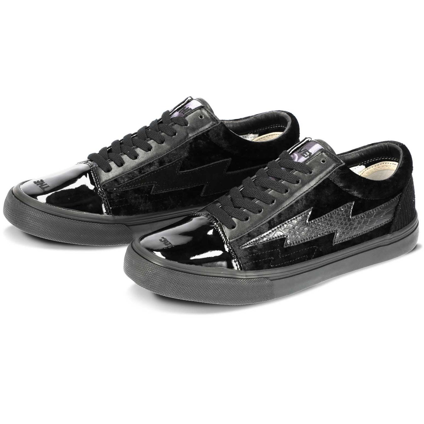 定番モデルの「CLASSIC PLUS」をベースに、アッパーにはクラッシュベロアや、エナメル、コーデュロイなど様々な素材を使用。アイコンとなる稲妻モチーフはパイソン素材を使用した高級感があるモデルとなっている。