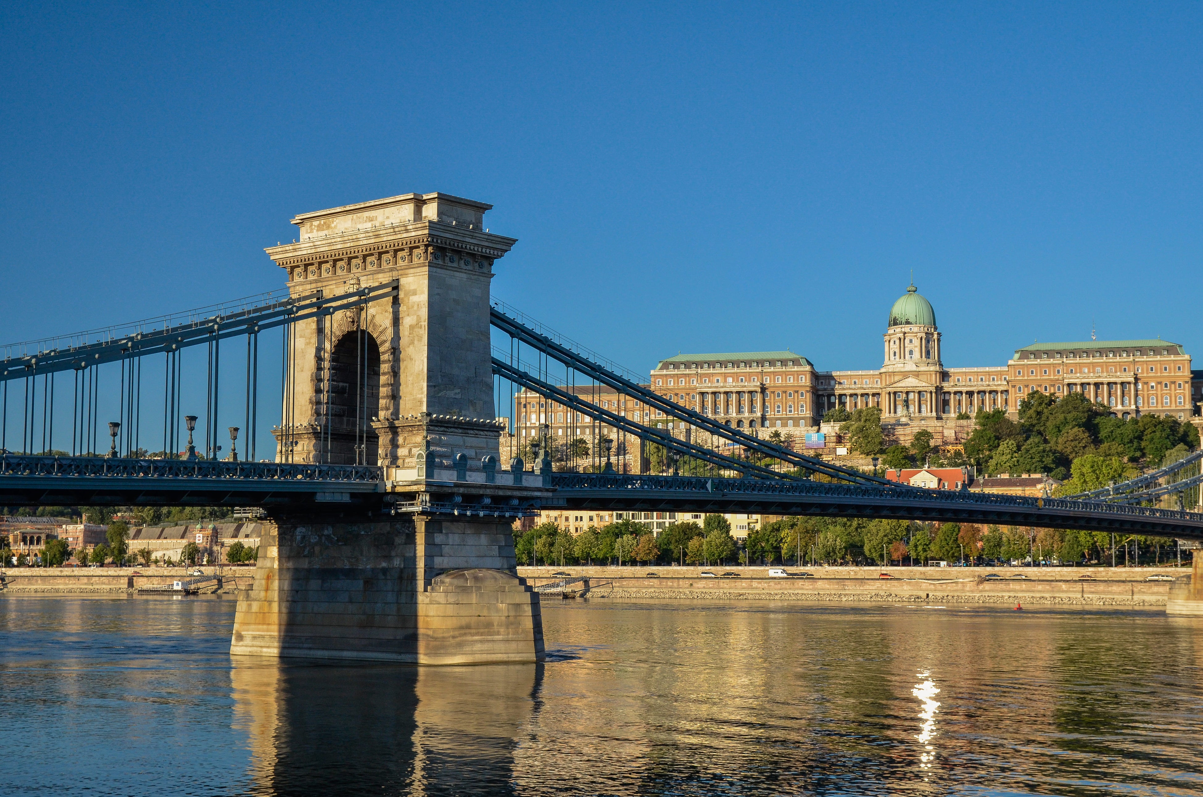くさり橋と呼ばれることが多いブダペストのシンボルですが、正式名称は「セーチェーニくさり橋」。ブダペストで最も美しい橋であり、ハンガリー首都の最も象徴的なシンボルです。橋の建設は、セーチェーニ・イシュトヴァーン伯爵によって始まりました。工事は1839年に始まり、1849年に完成しました。橋の建設はイギリス人ウィリアム・ティアニー・クラーク、建設監督はスコットランド人のアダム・クラークでした。後者にちなんで、トンネルとくさり橋の間の広場は、クラーク・アダム広場と名づけられました。橋の入り口にあるライオンの石像は、彫刻家マルシャルコー・ヤーノシュによってつくられました。