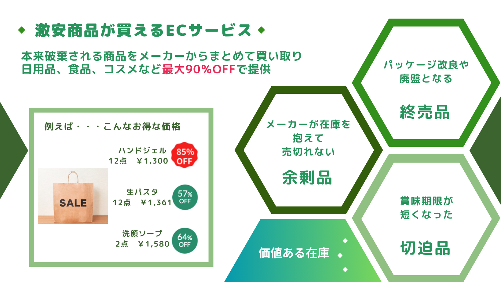『30~90%OFFの激安商品が買えるECサービス』『生活支援サービス』