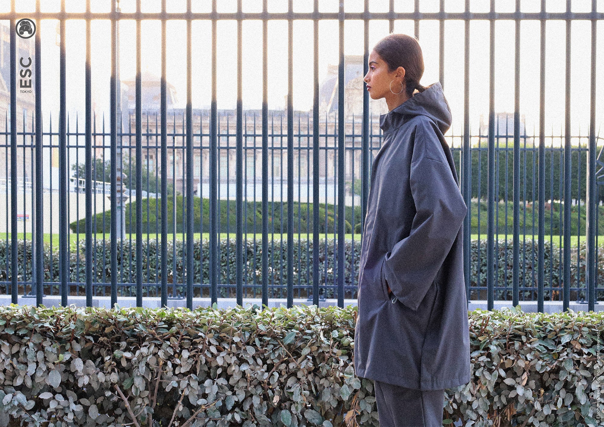 フードコート、ジャケット、パンツ、Tシャツは時代を超えて愛される定番アイテムをコンテンポラリーなデザインで再解釈。ワークウエアや機能的なアウトドアギアの潜在的なエレガンスを引き出しています。滋賀県と静岡県の老舗織布メーカーと作り上げた100%オーガニックコットンの上質なテキスタイルに、東京の革新的な染め職人による草木染やミネラル顔料染めを施し、ラディカルでエシカルな贅沢さを持ち合わせています。付属パーツやナットボタンも高品質な日本製を使用。ESCの全てのプロダクトは優れた縫製技術を誇る秋田と岐阜の工房で丹念に作られています。