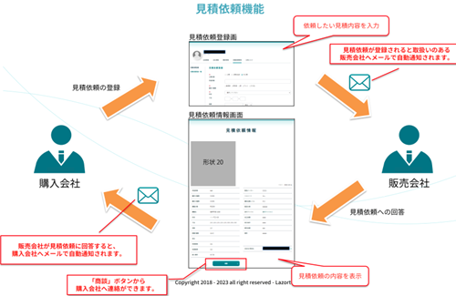 購入会社様は下記のように、新しい会社や金属材料を検索したり、見積依頼を行うことが可能です。