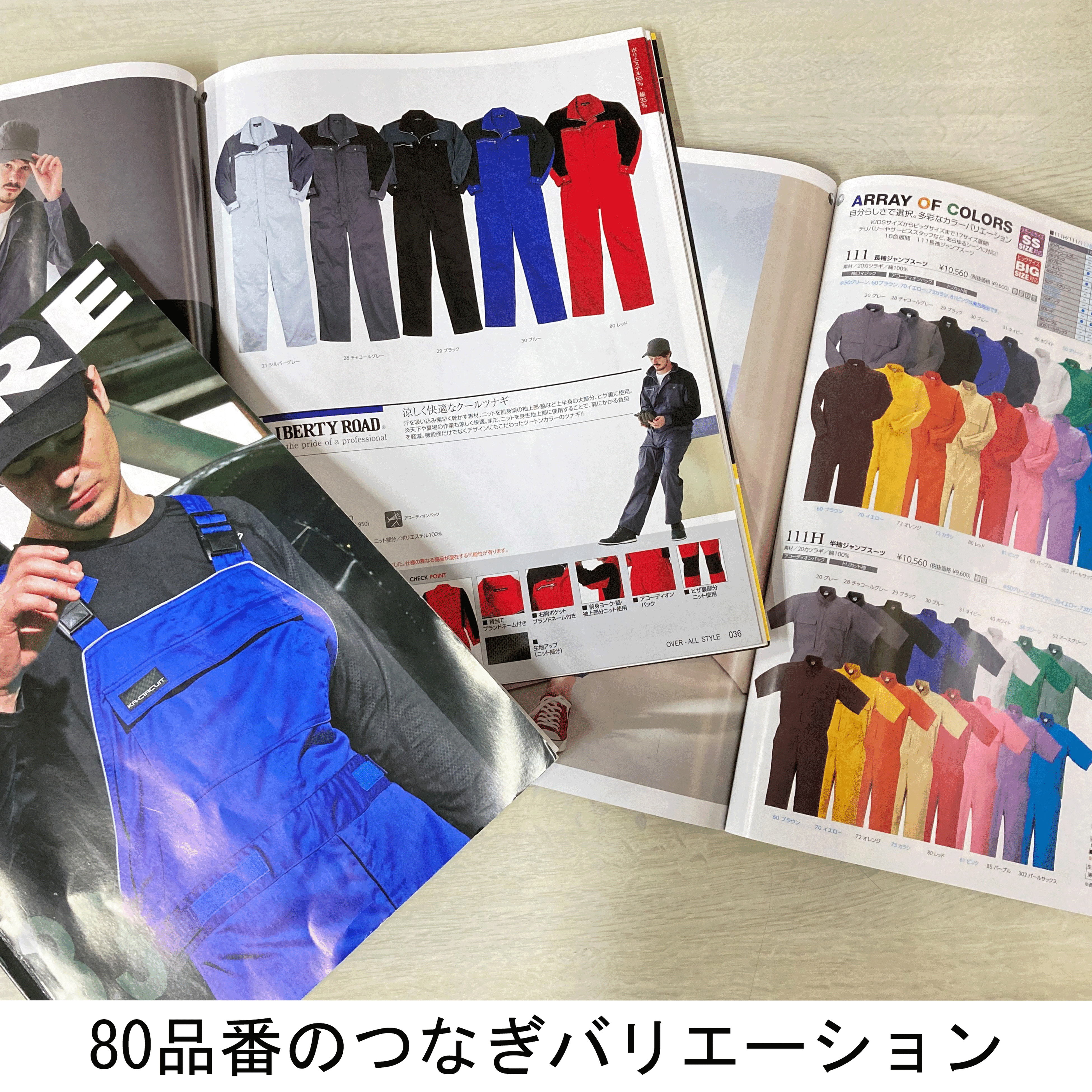 ファッション性・機能性を両立したプロ仕様つなぎを短納期・工場価格で提供。80型・最大10色から選定したつなぎをオーダー加工、最適なつなぎを実現