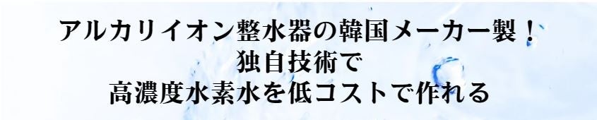 ➋アルカリイオン整水器の韓国メーカー製。独自技術で高濃度水素水を低コストで作れる。