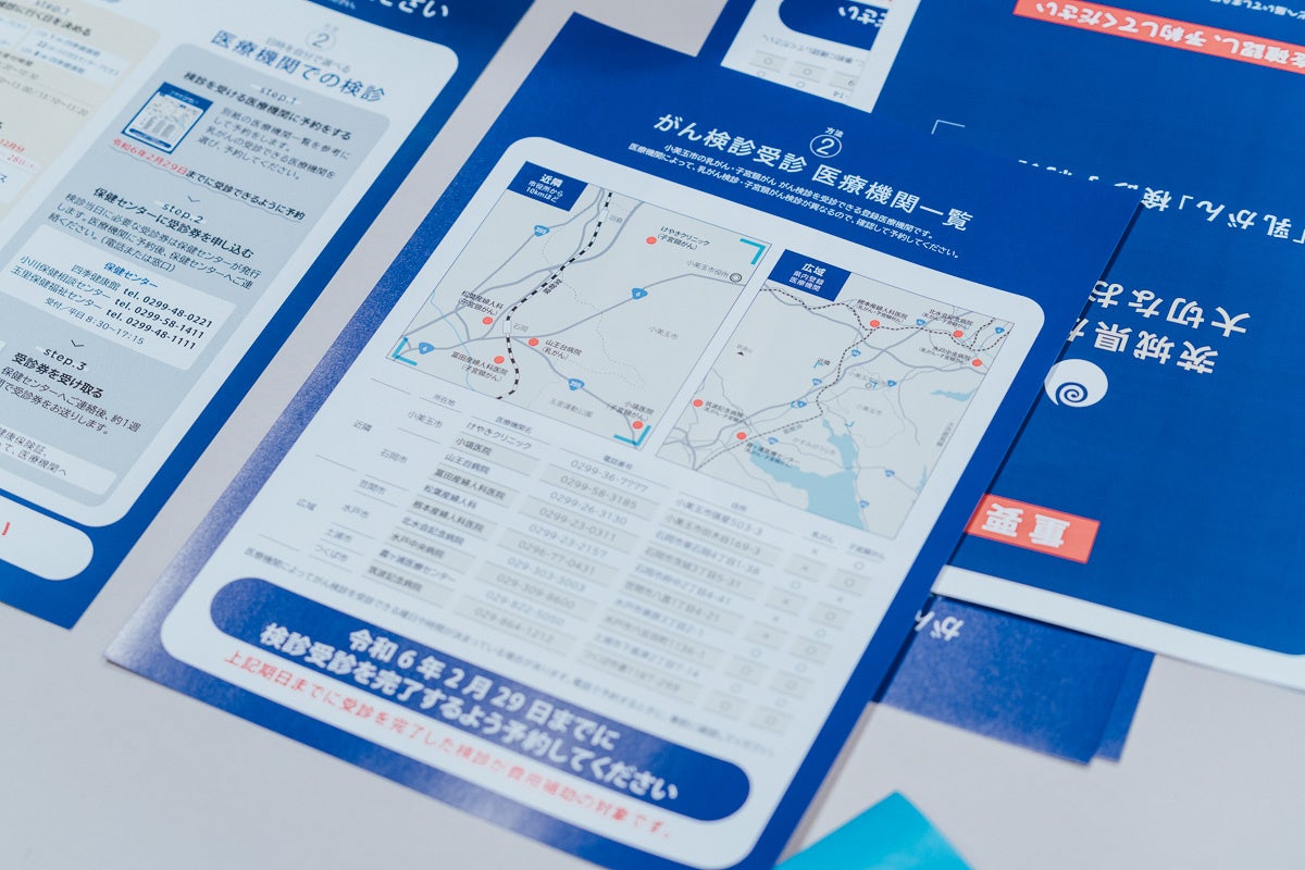 勧奨通知のデザインは、受け取った方が見やすいように工夫しています。はがきサイズではなく、A3サイズのカラー冊子とし、検診を受けることの大切さや検診予約の流れ、検診費用についてひと目でわかるデザインとしています。