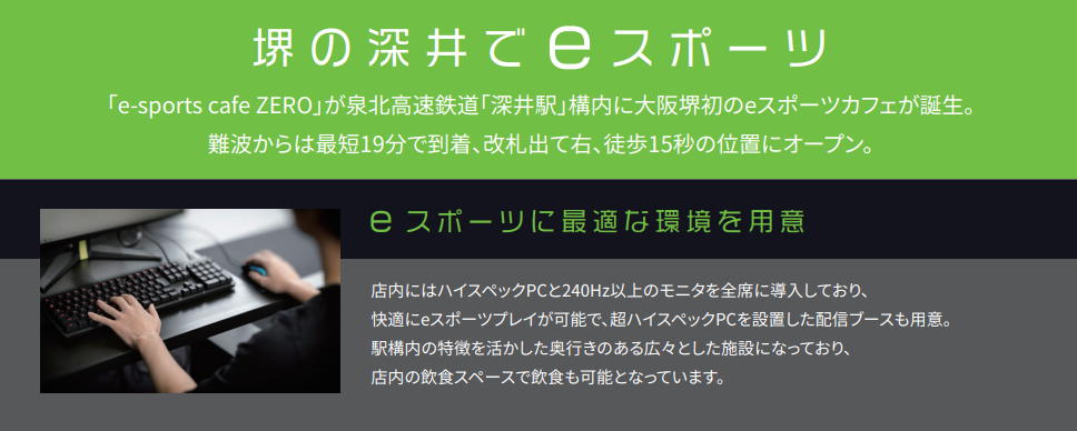 NEICS合同会社(代表社員:有江 俊治)は、大阪府堺市 深井駅に直結のeスポーツ施設 e-sports cafe ZEROを12月9日にオープンします。 e-sports cafe ZEROは、高性能最新のハイスペックゲーミングPC33台を常設する関西最大級のeスポーツ施設です。関西のeスポーツシーンを盛り上げるべく、今後、様々なイベントを開催します。オープニングイベントとして、VALORANTと鉄拳7の人気プレイヤーが参加する交流会を12月9日(土)と12月10(日)に開催します。