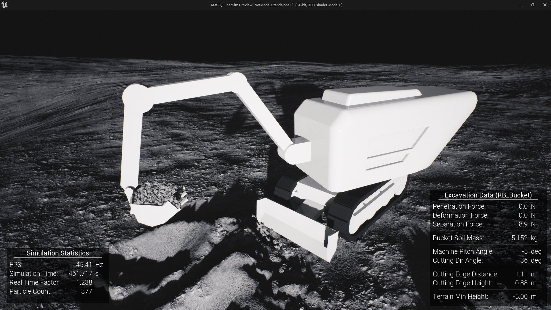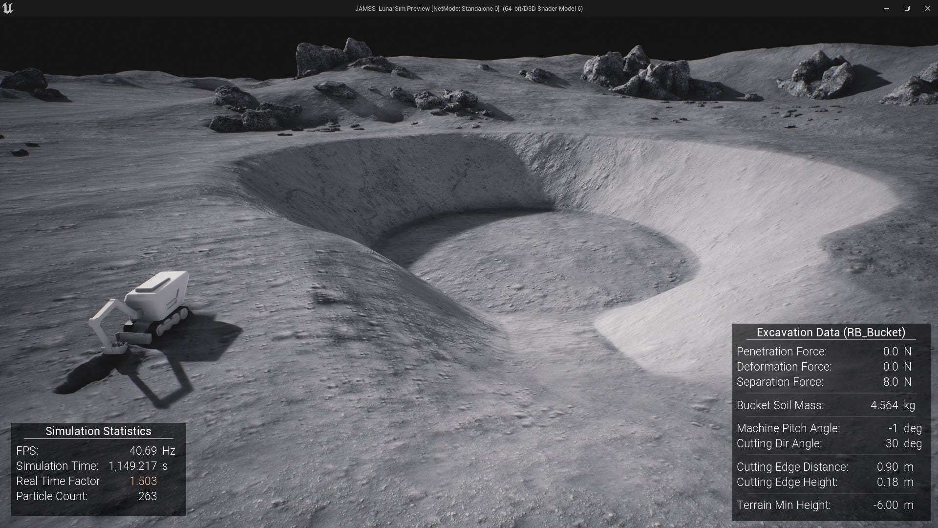 月面の物理シミュレーションは、開発プラットフォームにゲームエンジン「Unreal Engine5」、物理挙動の計算に使用される物理エンジンにAlgoryx Simulation AB社製の「AGX Dynamics」を使用します。高性能の開発プラットフォームと物理エンジンにより、月面での作業をできる限り忠実に再現できるようシミュレーション環境を構築します。