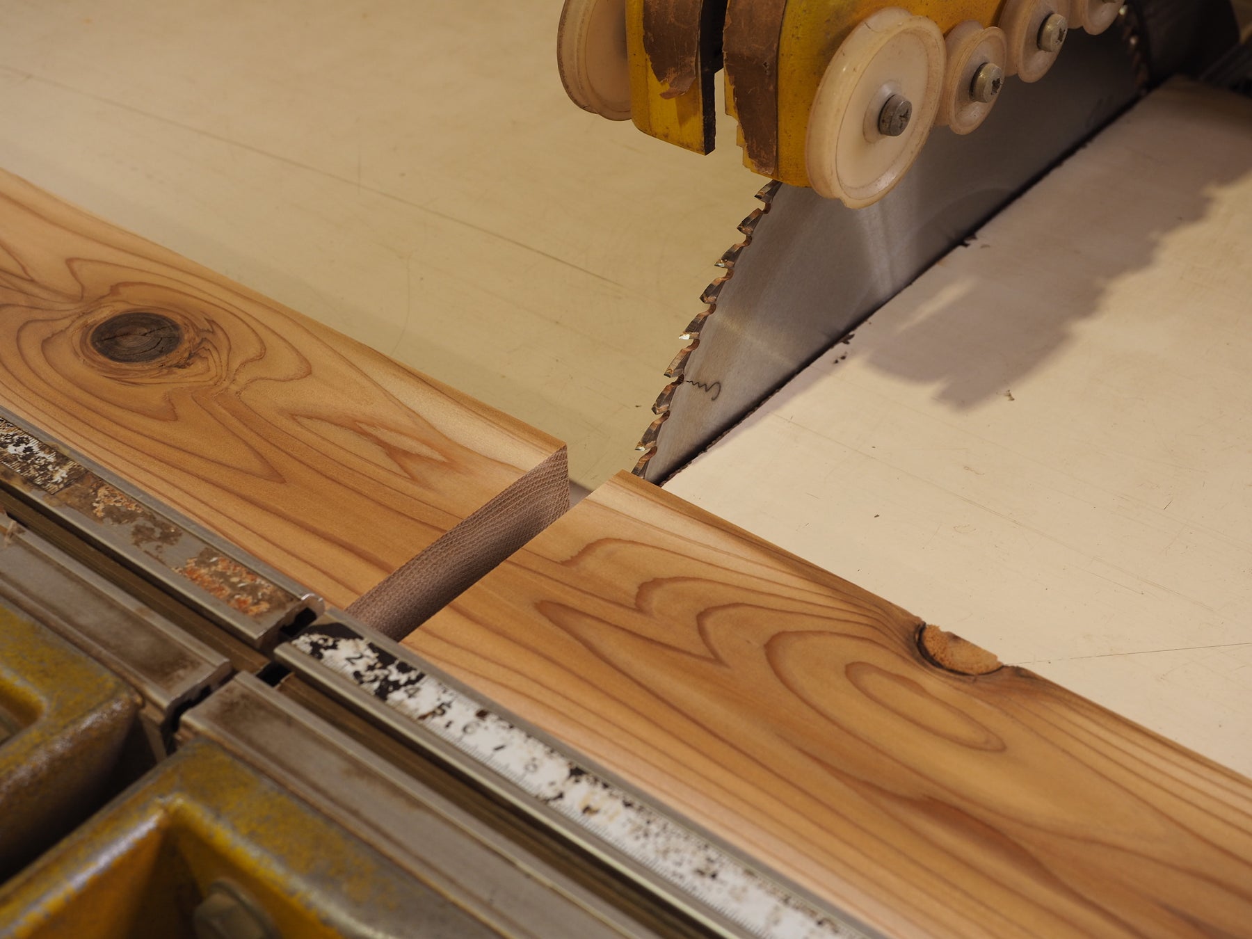 そんな大径木を利用して、通常なら集成材で作られるような幅広の板材も一枚板でご用意。