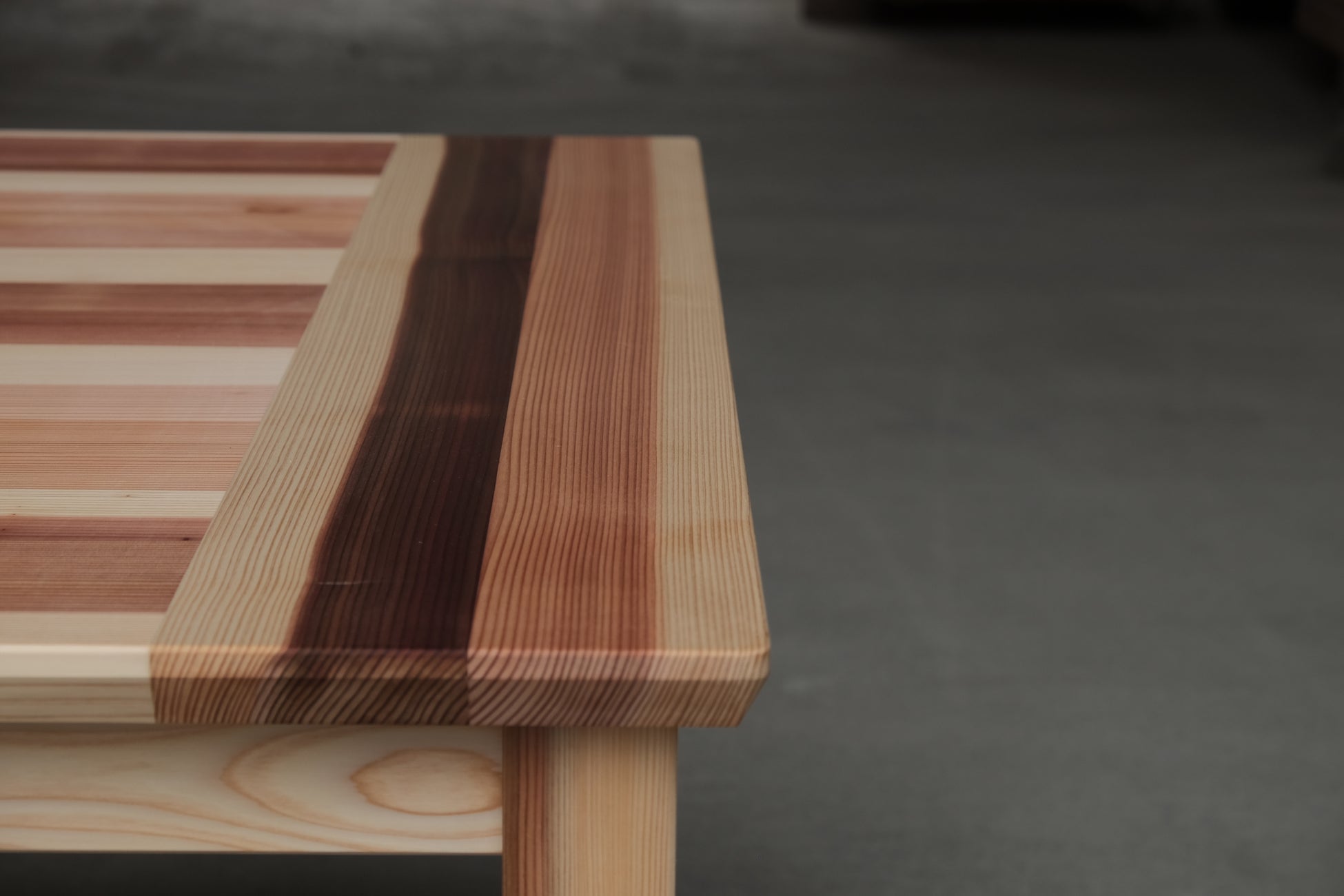 針葉樹である杉・ヒノキは、家具材として一般的な広葉樹材よりも柔らかく、傷や汚れが付きやすい面があります。しかしこれは特別な道具や技量が無くても、自分でメンテナンスしやすい素材であるともいえます。