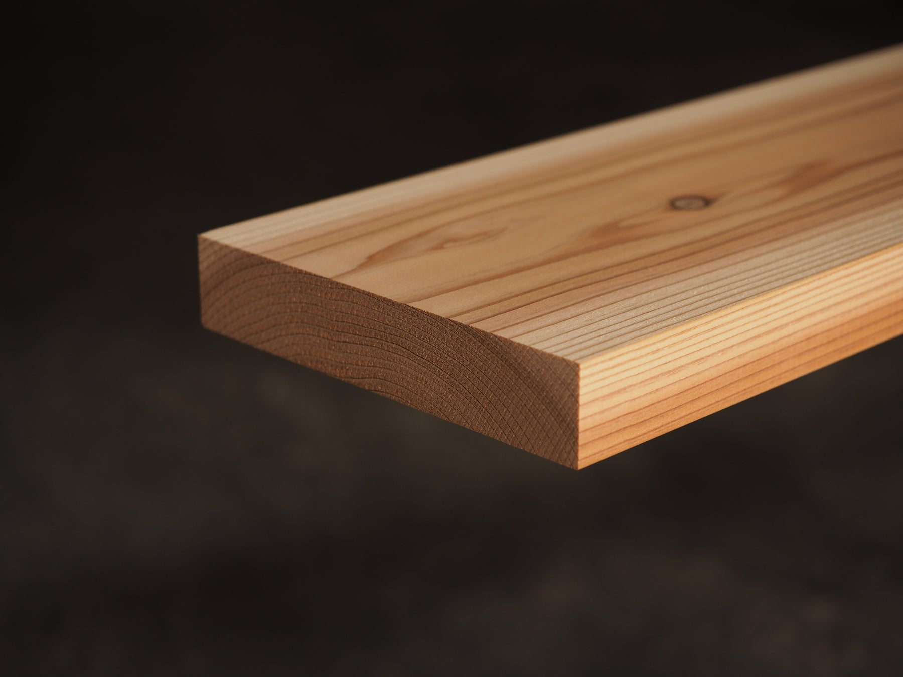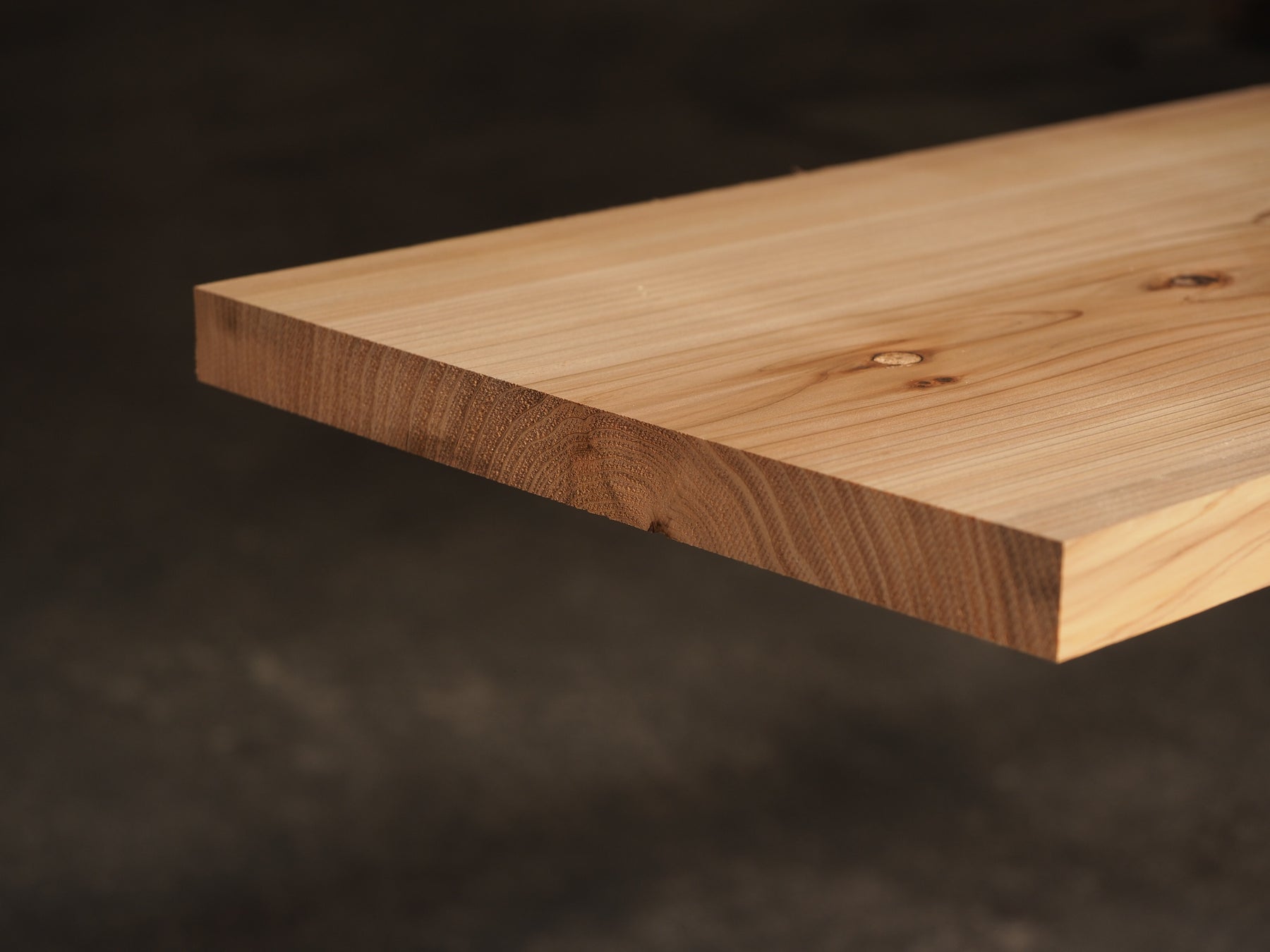 無垢の木材は湿気を吸放湿する性質上、反ったり曲がったりする素材です。加工後に時間が経てば経つほど何かしらの “動き” は起きてしまうものなのです。当ショップではご注文を頂いてからオーダー寸法への仕上げ加工を行うため、そのような動きは限りなく少ない木材となり、木のフレッシュな香りも感じることが出来ます。