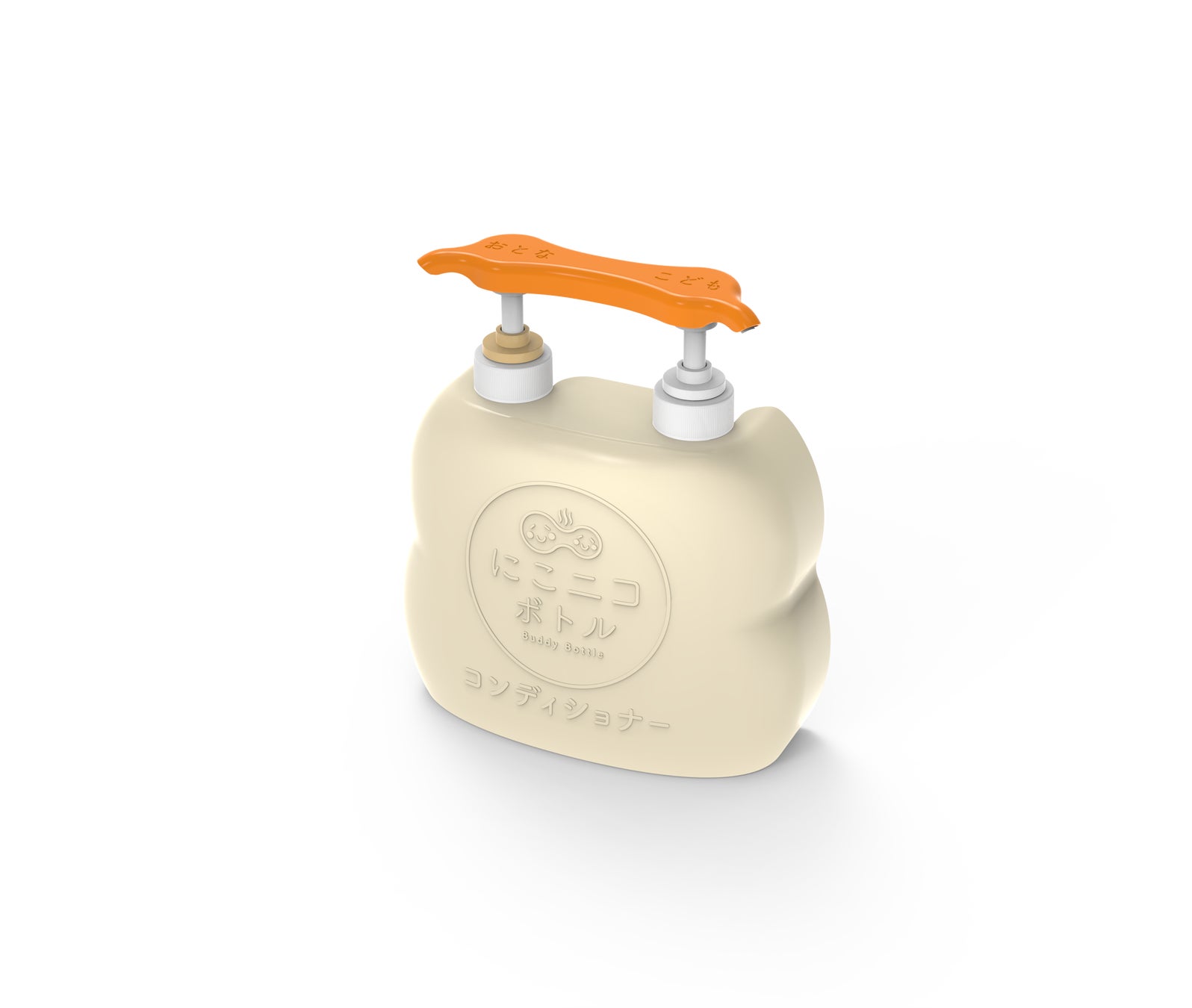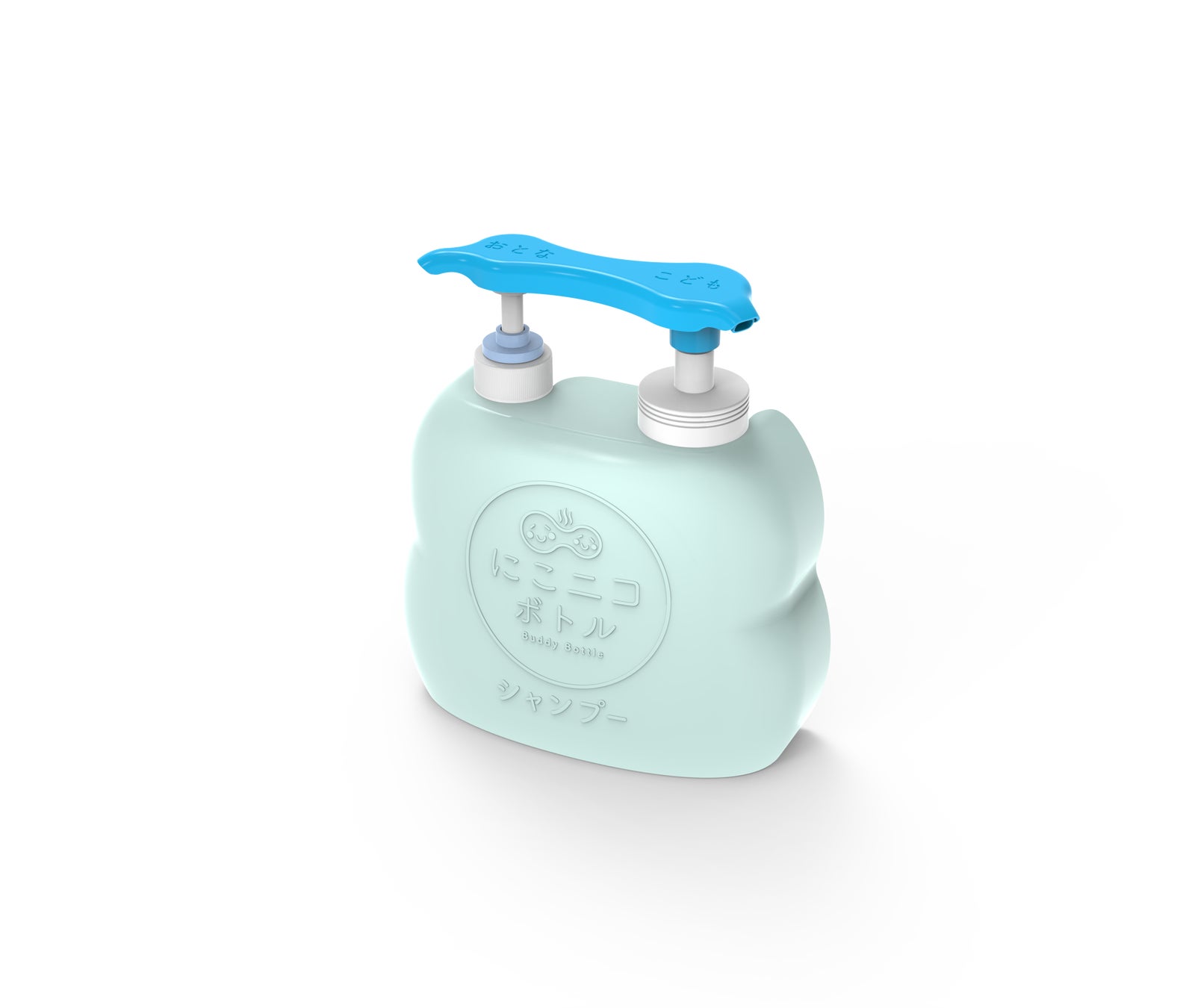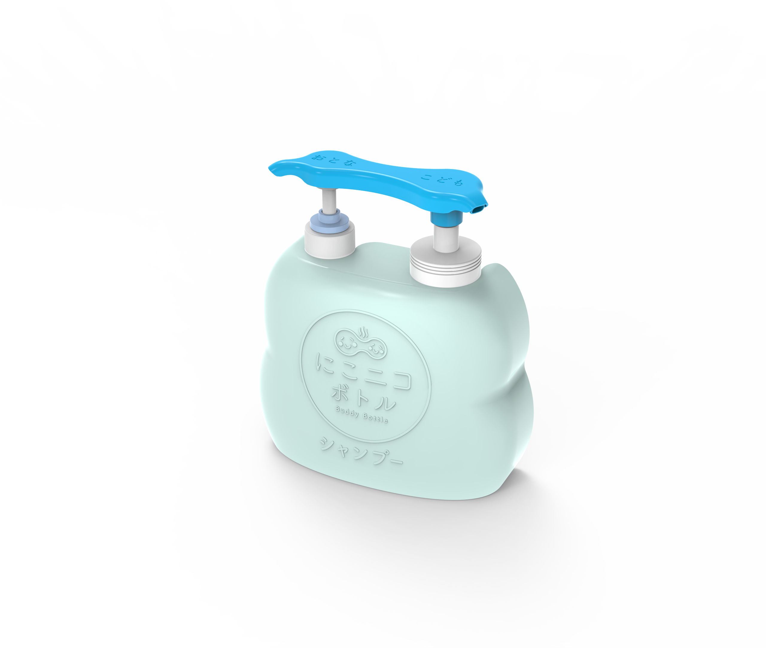 押さないと出てこない⾮売品のシャンプーボトル『にこニコボトル』を開発しました。