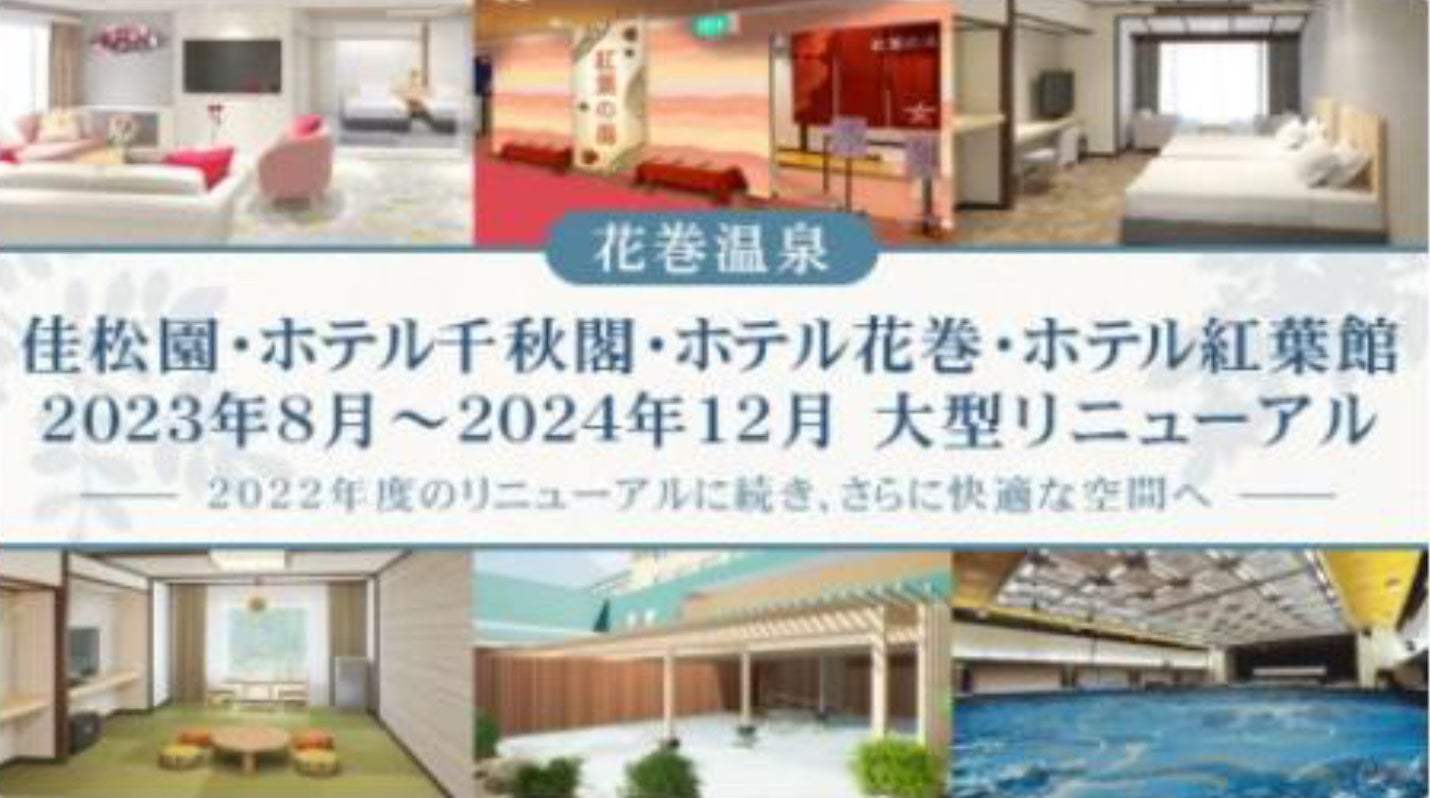 花巻温泉(花巻市湯本1-125/代表取締役社長 安藤 昭)では、創業以来初となる11日間の計画休館を実施、期間内は従業員の長期休暇取得を実施し、宿泊業における働き方の改革として働き手の定着化を目標とした当社SDGsの取り組みを実施します。さらに昨今の物価上昇や優秀な人材確保、異業種への離職防止などに対応するため、給与のベースアップを行う事を決定、初任給も来春入社の方より引き上げに加え、実力に応じた定期昇給を別途実施します。また従業員食堂の全面リニューアルやスタッフユニフォームの刷新、社宅および社員寮の改装など職場環境や福利厚生にも取り組んで参ります。
