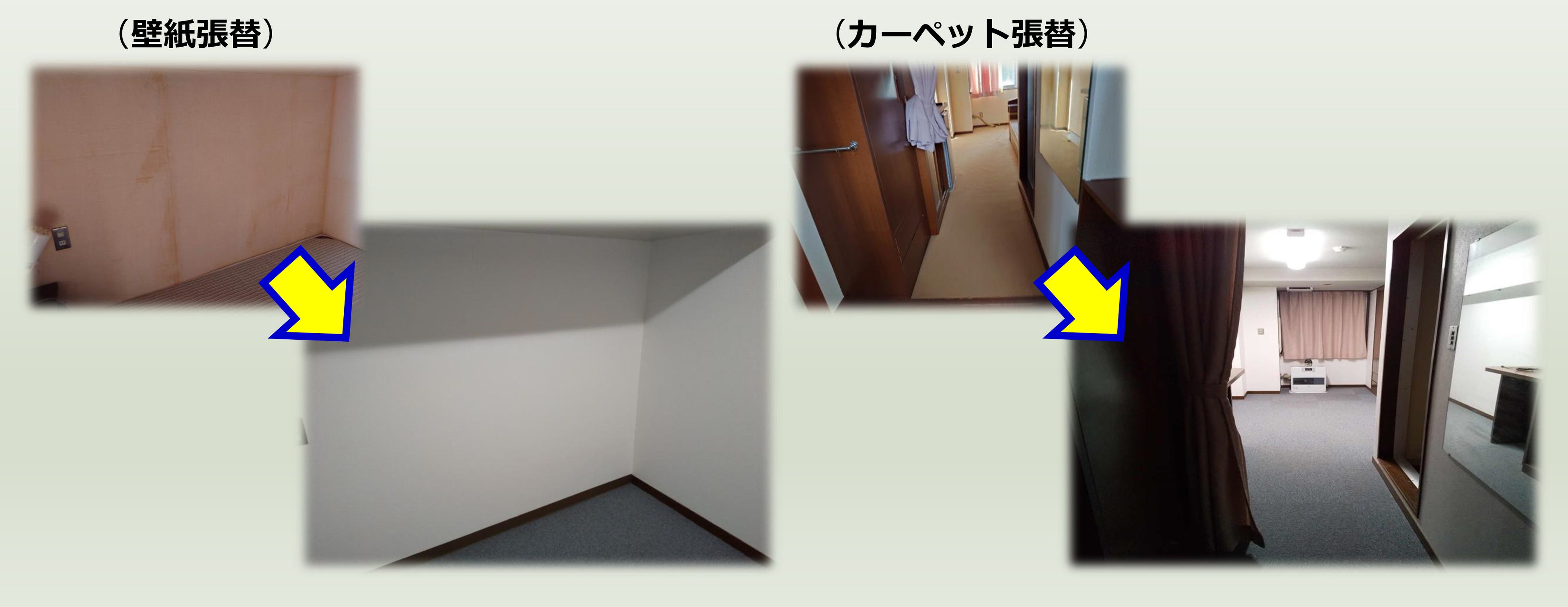 この休館は令和5年度・6年度の観光庁「地域一体となった観光地・観光産業の再生・高付加価値化事業」を活用した全館一斉改修工事と一斉点検、メンテナンスを行うことによる安心、安全の向上を目的としております。さらに期間内は従業員の長期休暇取得を実施し、宿泊業における働き方改革として当社ではハード面、ソフト面を向上する休館と位置づけ「向上休館」と命名いたしました。