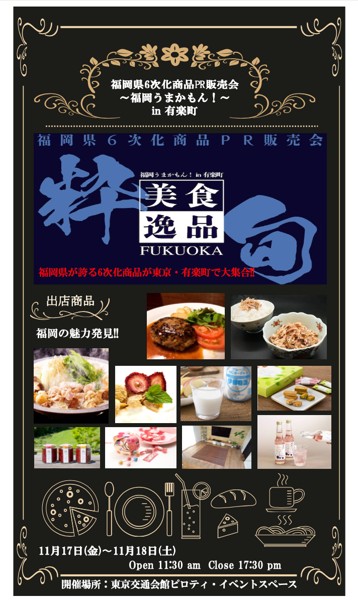 ■いつもご愛顧いただき、誠にありがとうございます。今回、福岡県が自慢する6次化商品の魅力を東京の皆様にも伝えたく、有楽町にて特別なPR販売会を開催する運びとなりました。