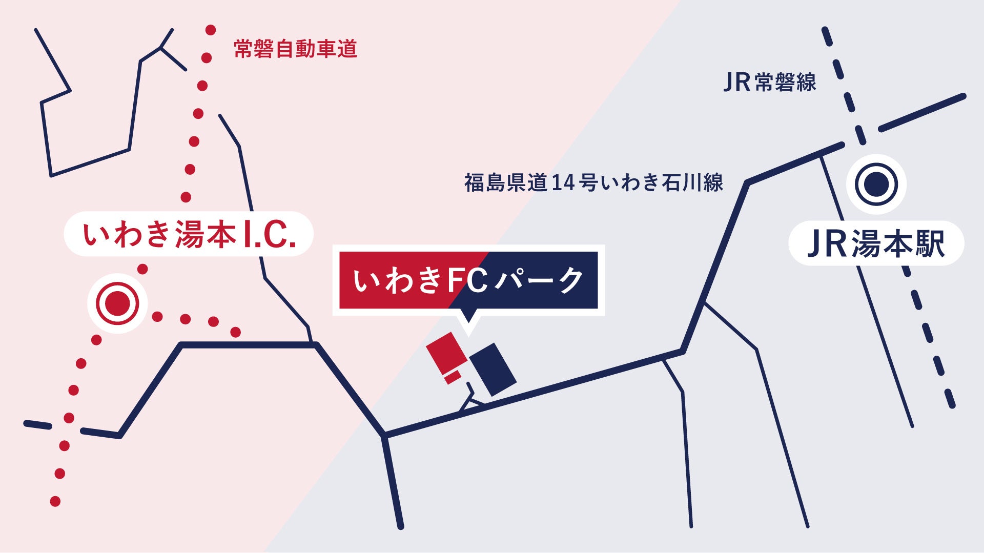 ・新常磐交通「ハワイアンズ行」、「根岸行」バスに乗車し、「いわきFCパーク」停留所にて下車。